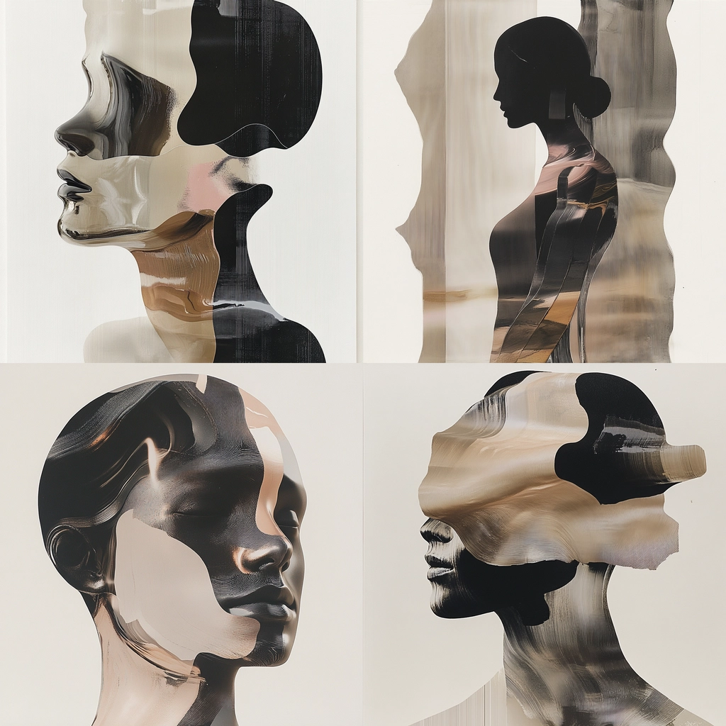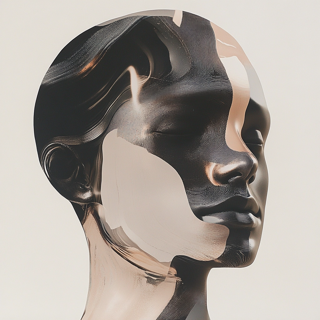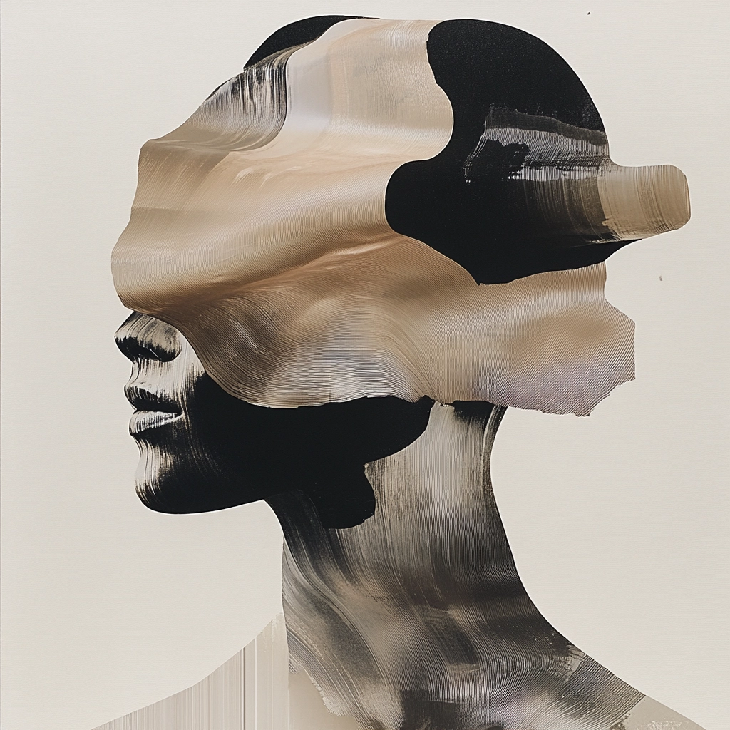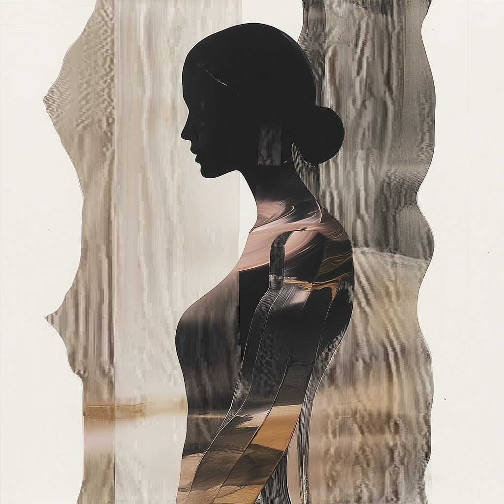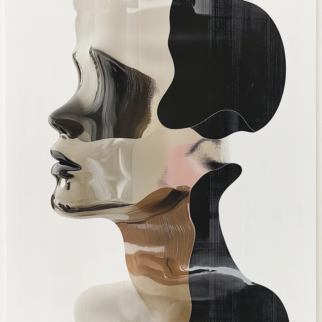 The use of fluid line work and blurred textures creates a dynamic interplay between light and shadow. The soft gradients and muted palette emphasize depth and form, blending seamlessly with linear distortions that invoke a sense of motion.