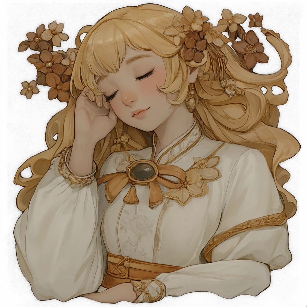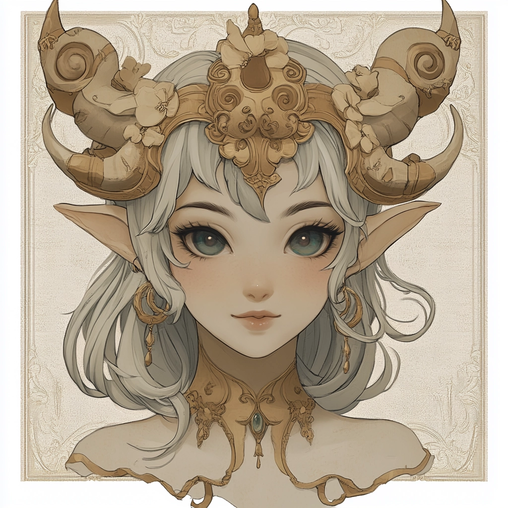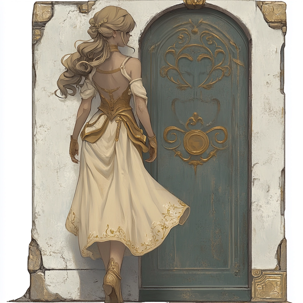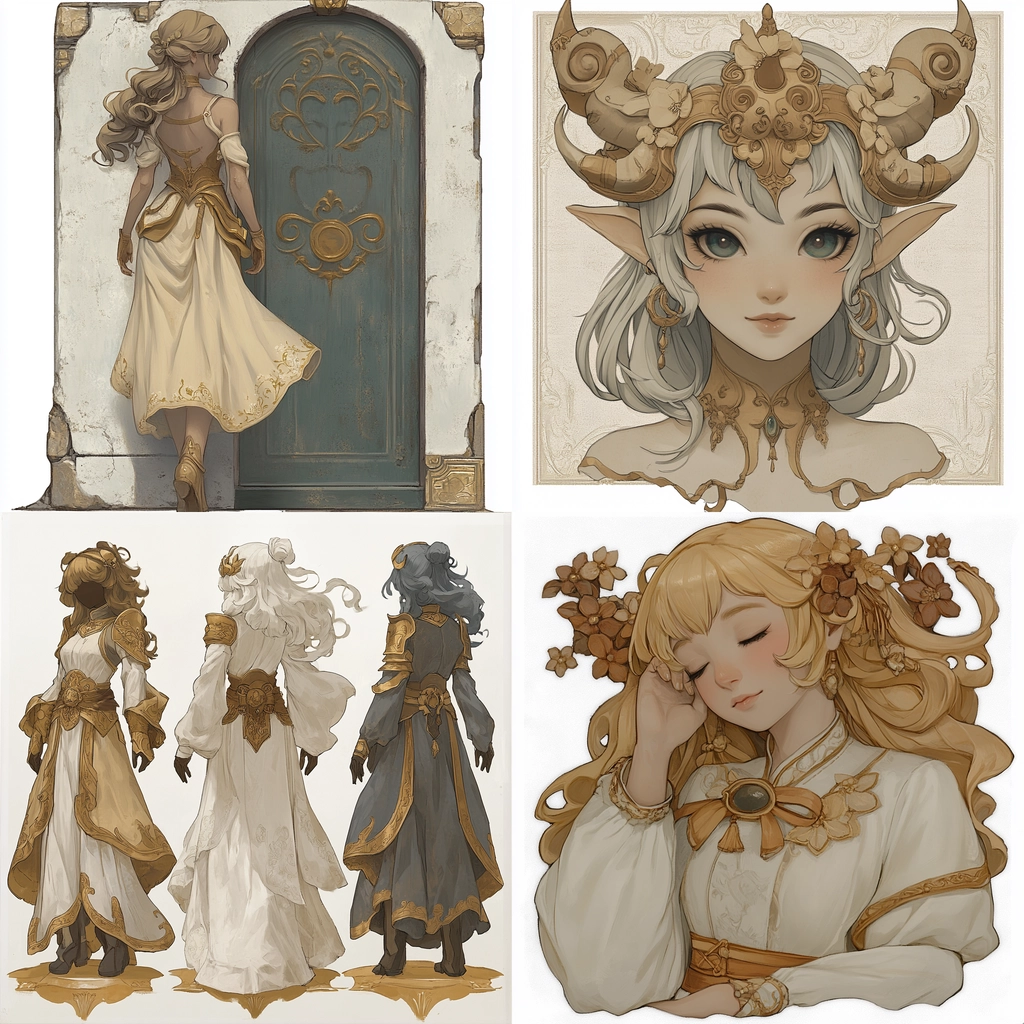 The artwork features muted hues with intricate details and ornate designs, creating a sense of elegance and timeless allure.