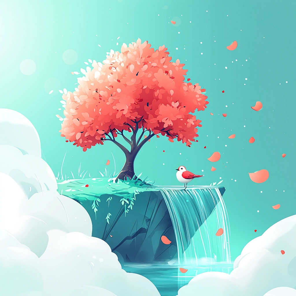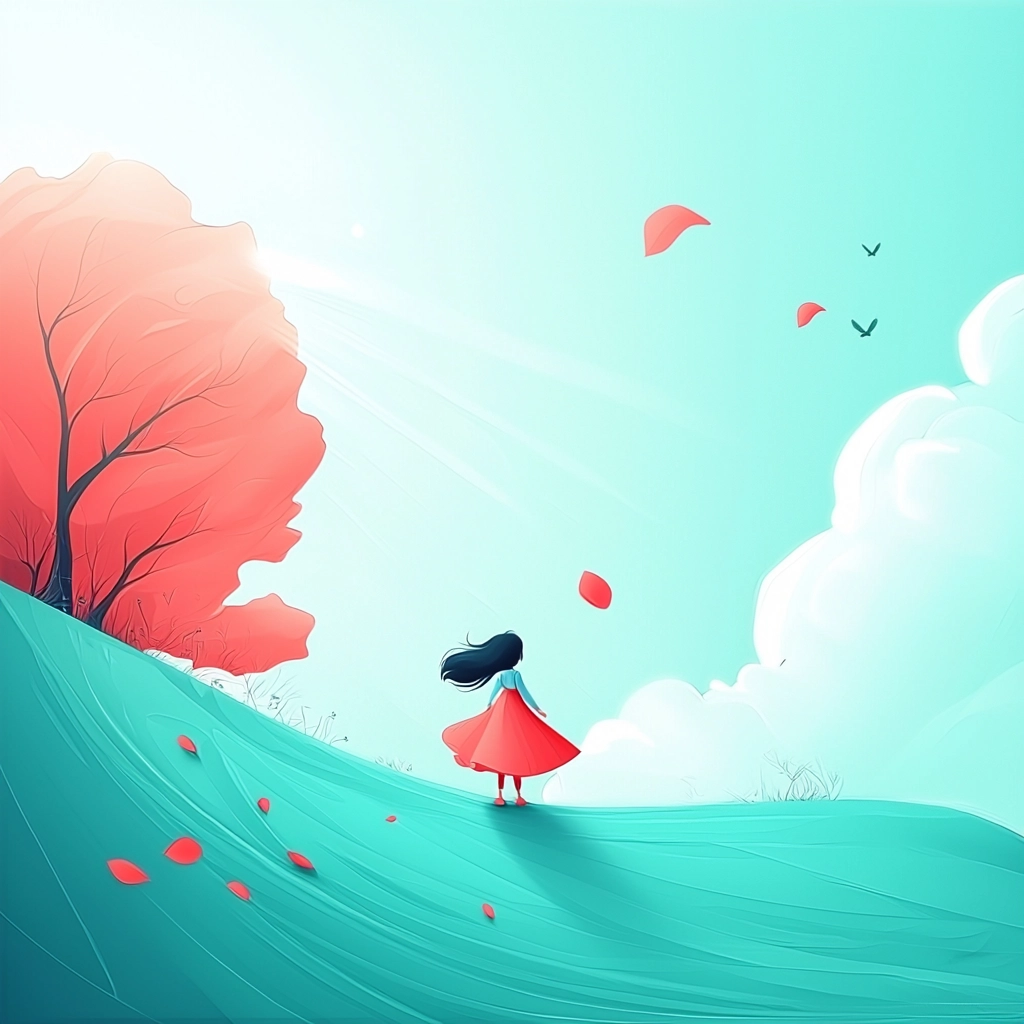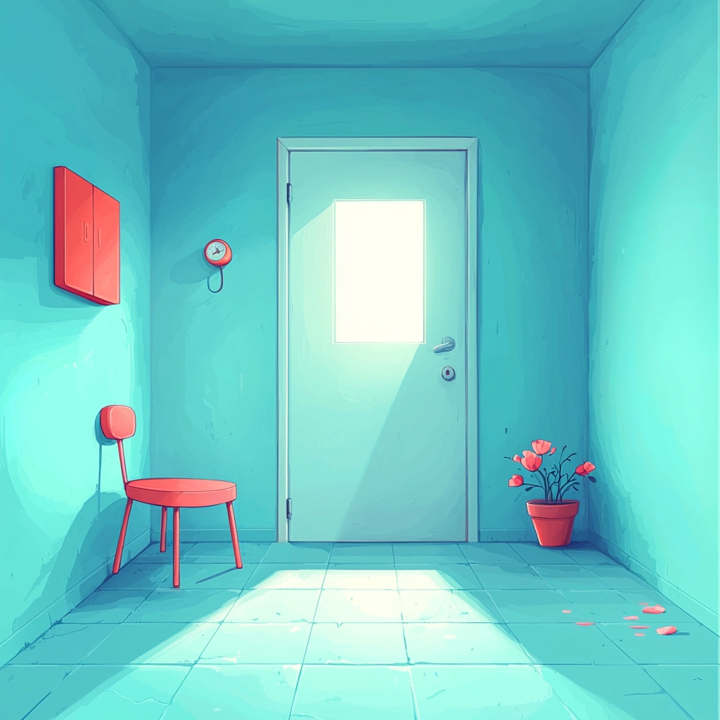 The interplay of sharp cyan and vivid red offers a vibrant contrast, with a focus on light dispersion and clarity. Gentle lighting effects enhance spatial depth, while smooth textures complement the intense color scheme.