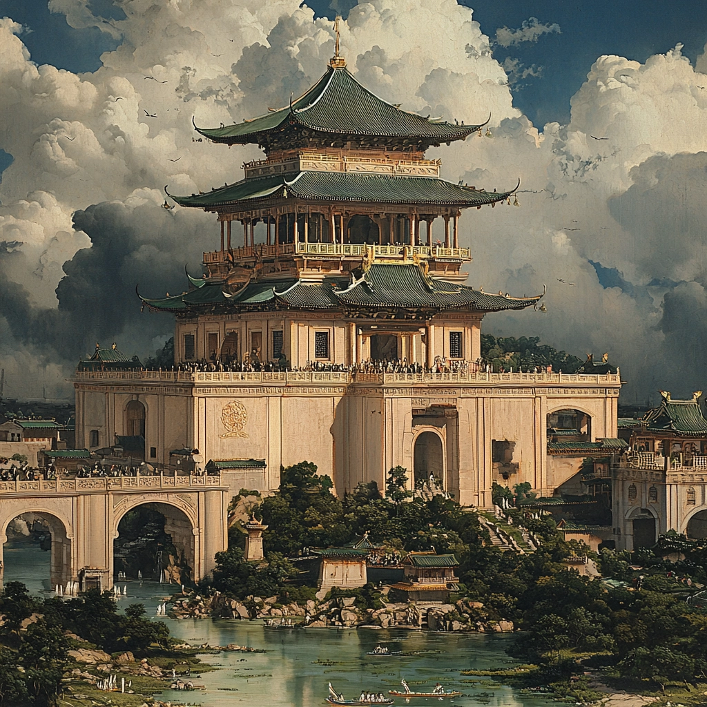 A harmonious blend of classical architecture with natural motifs, offering intricate detail and balance.