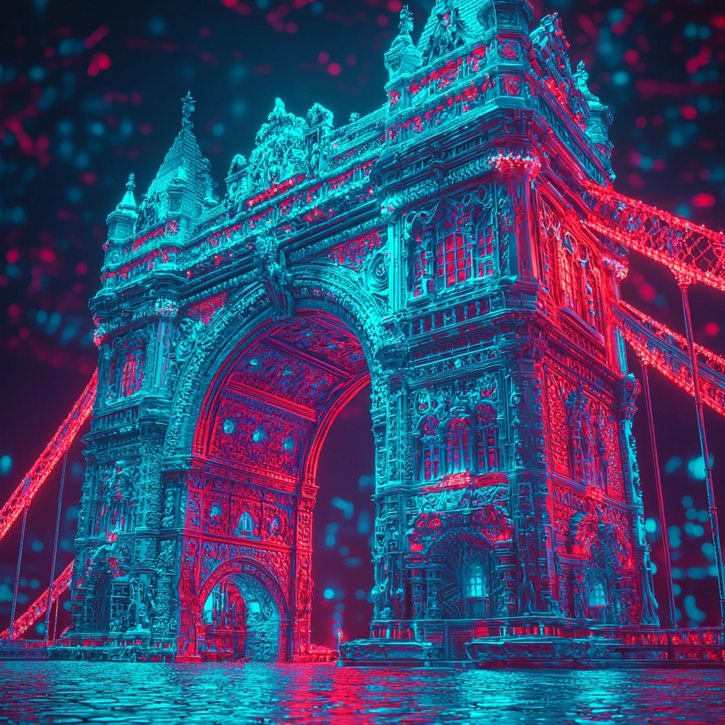 The vivid cyan and dark blue hues contrast sharply with red highlights, creating a mesmerizing interplay of colors.