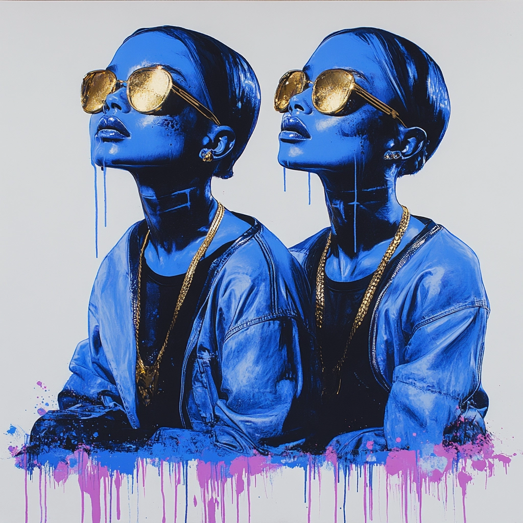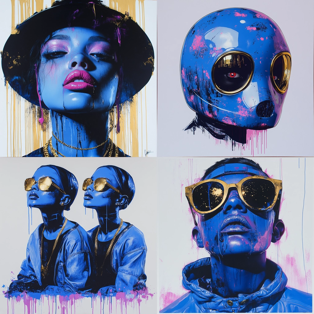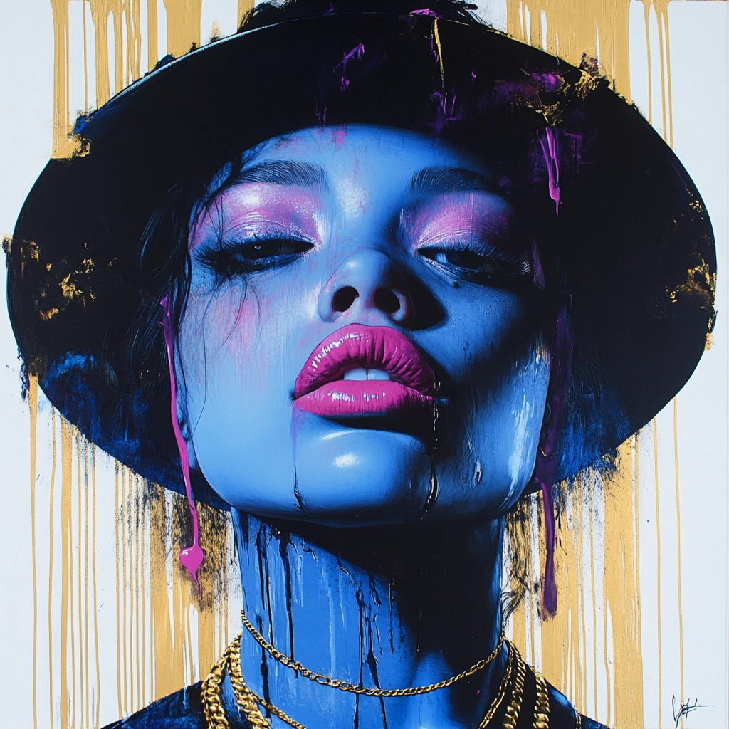 Blue and Gold Drip Portraiture