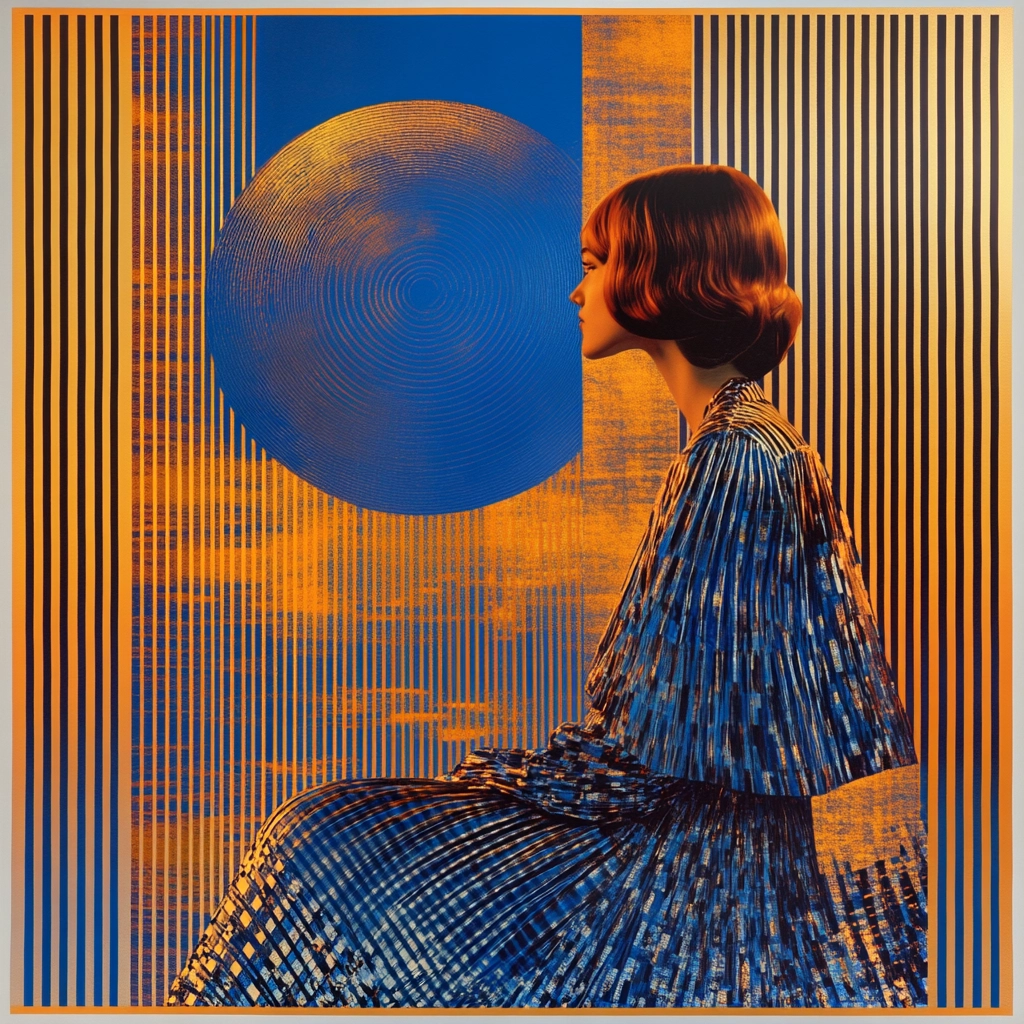 The use of blue and gold creates a striking visual contrast with dynamic compositions.