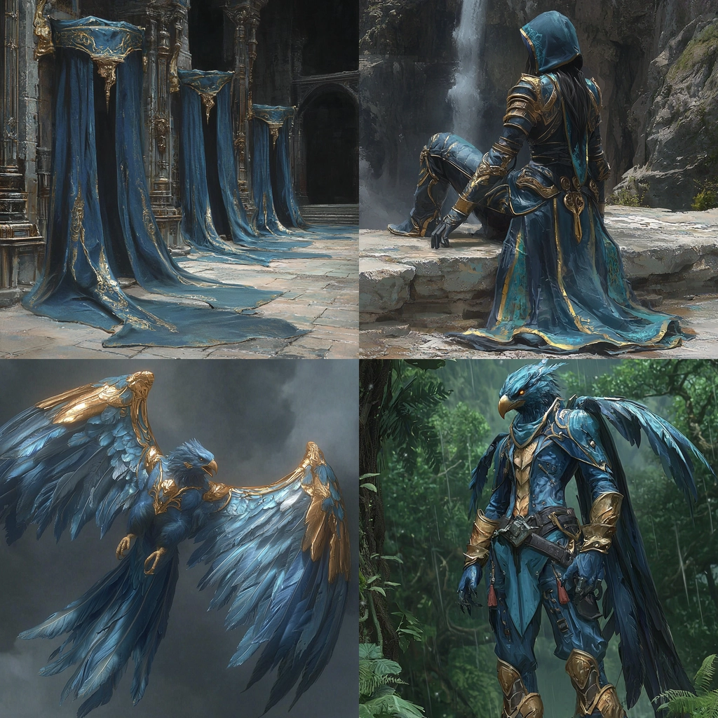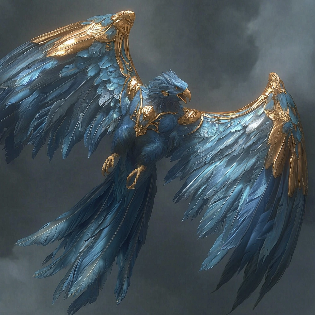 Rich, intricate designs with vibrant blues against metallic gold accents create a visually engaging and detailed composition.
