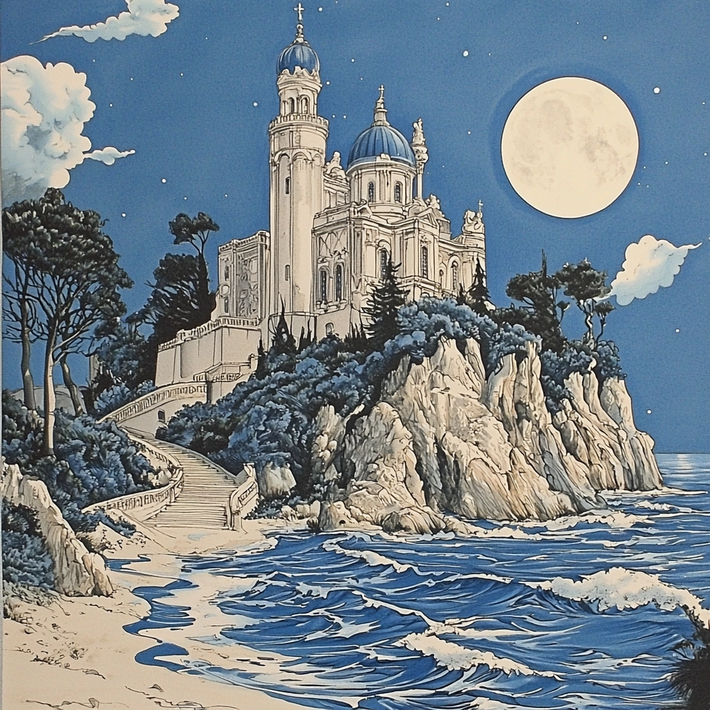 Prominent utilization of deep blue tones creates a striking contrast with subtle light and shadow effects.