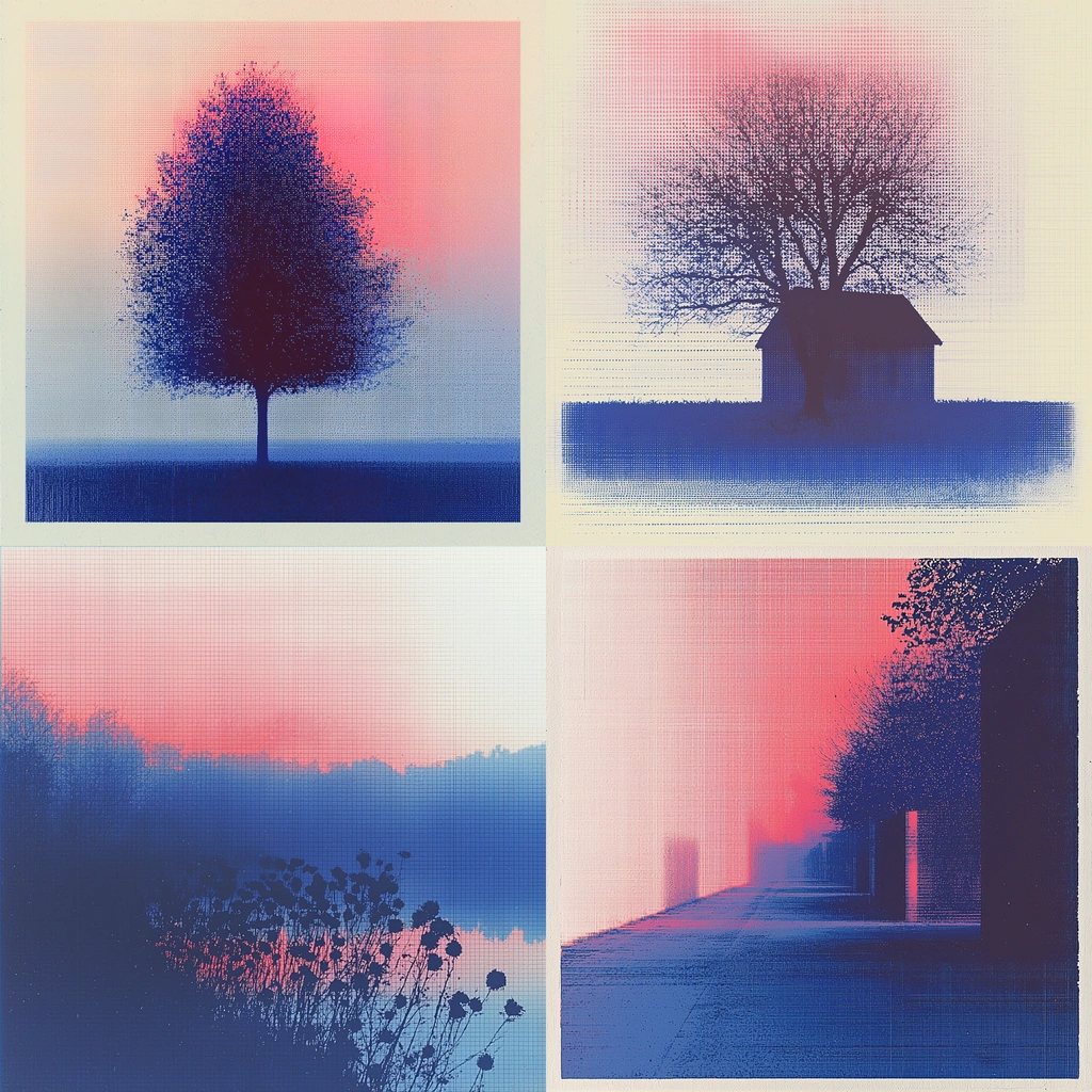Lighting effects cast a soft glow, while colors are blended with a diffused, gentle gradient. The spatial arrangement gives a sense of receding depth, enhanced by smooth, soft-trimmed textures.