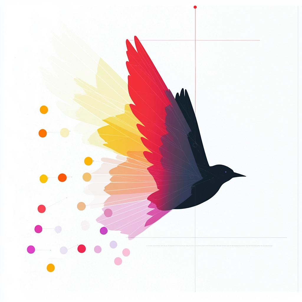 A striking use of sharp geometric forms and gradient transitions highlights a modern aesthetic.
