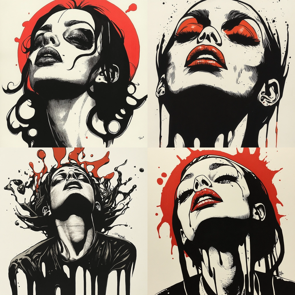 Bold Black and Red Drenched Figures