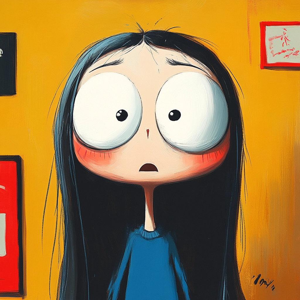 This artwork uses bold lighting to accentuate textures and intense color contrasts. The spatial arrangement is minimalistic yet thoughtfully designed to draw focus. The smooth and exaggerated textures contribute to a vivid and engaging composition.