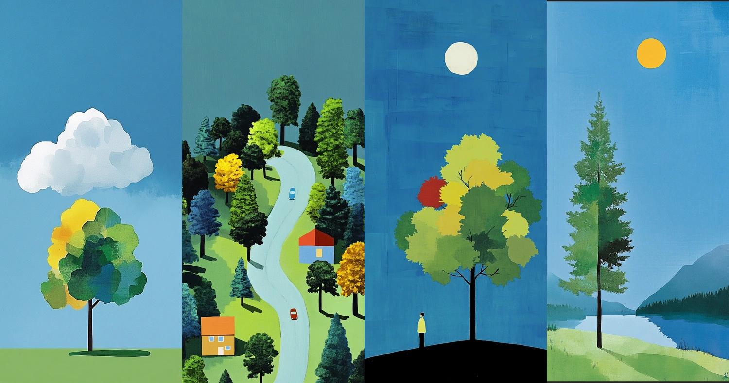 Lighting captures contrast, with solid colors defining form. Vibrant hues emphasize simplicity, while spatial arrangements enhance depth. Thick textures offer a tangible quality to the visual scene.