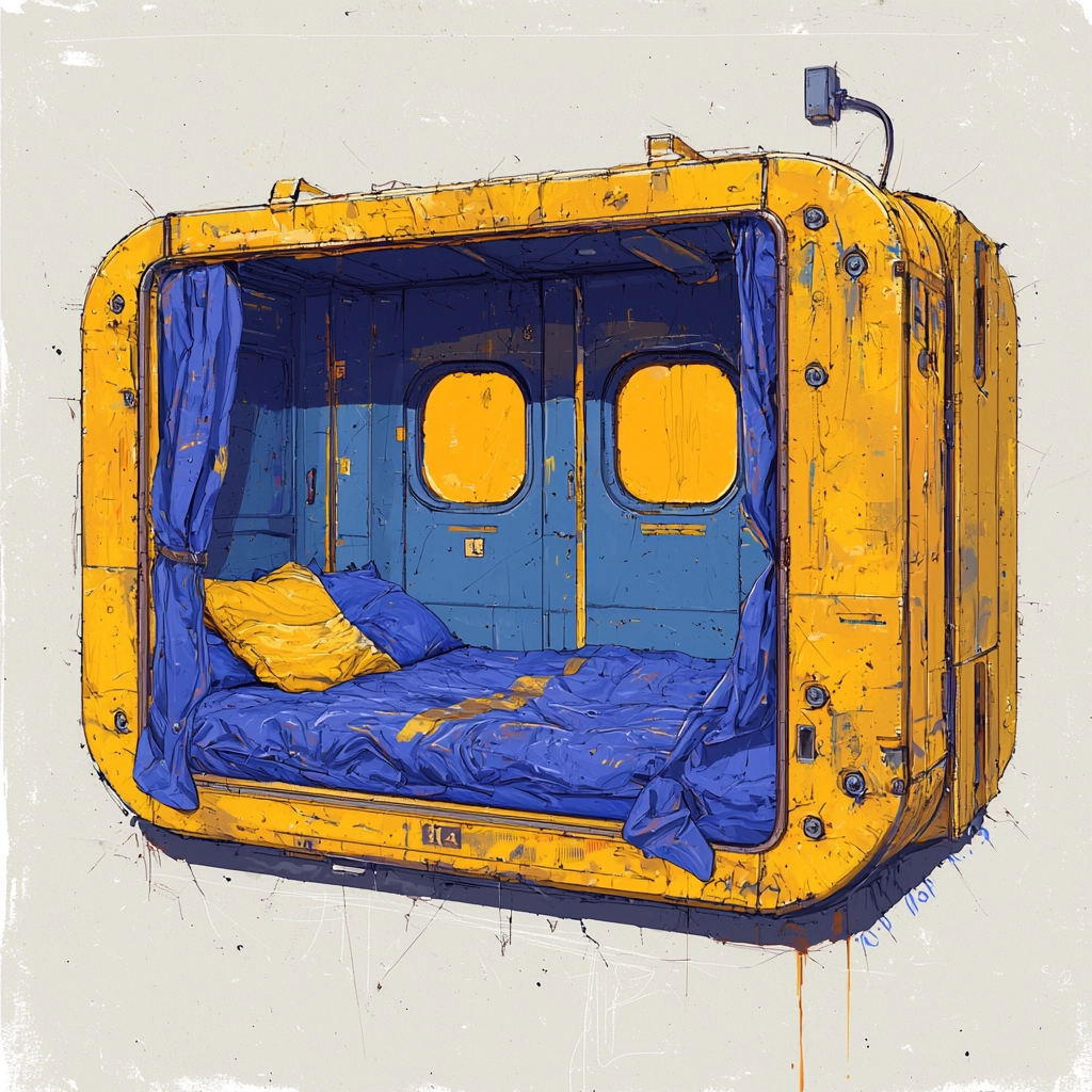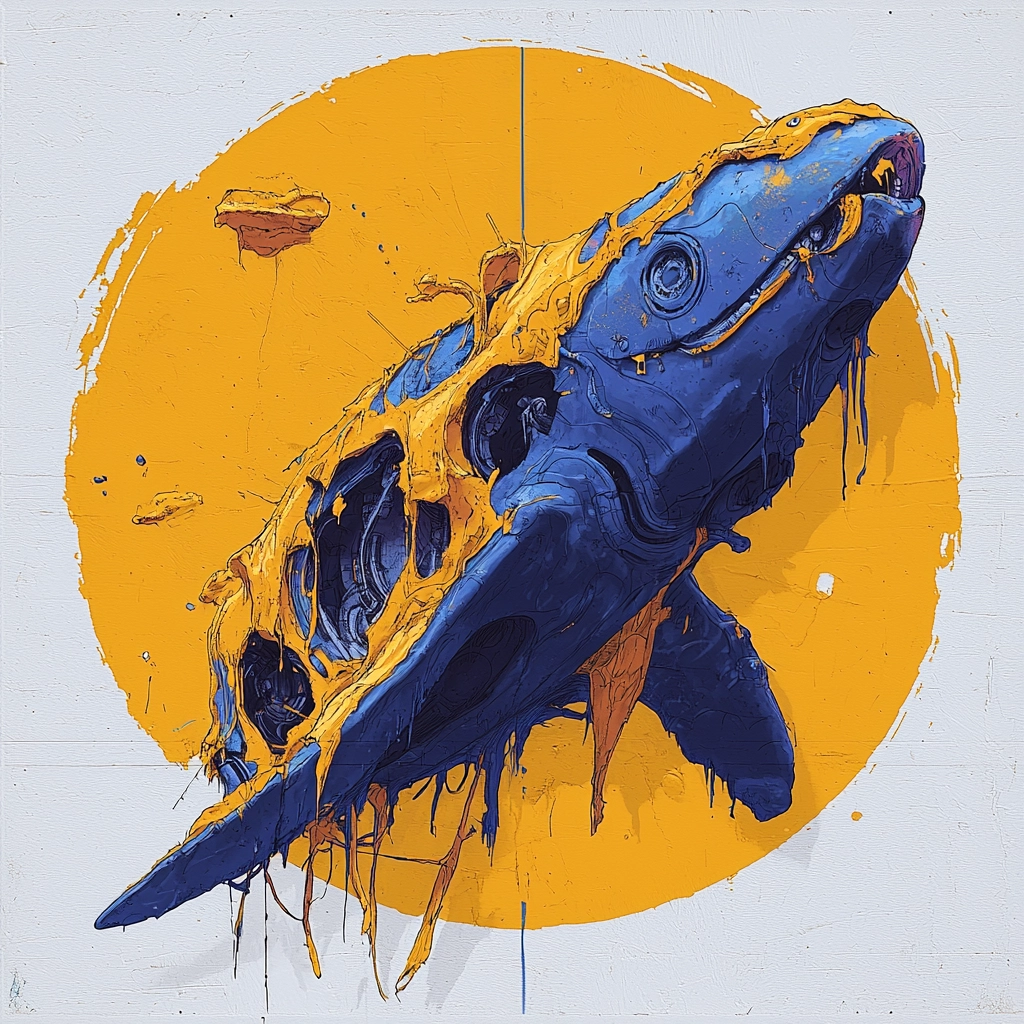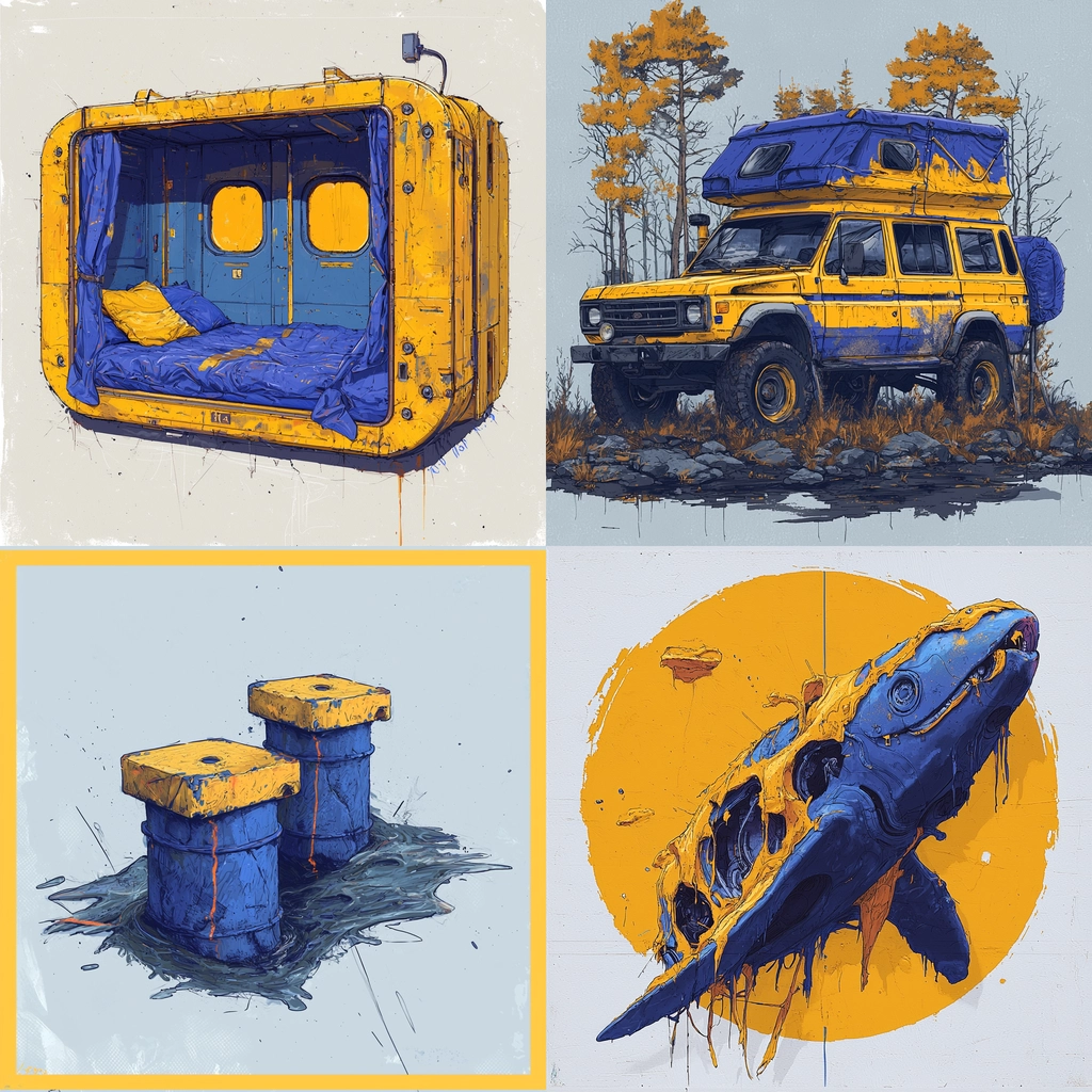 The usage of bold yellow juxtaposed with rich blue enhances the visual contrast, while the textured details convey a tangible quality. The lighting directs focus and enhances the composition, adding depth.