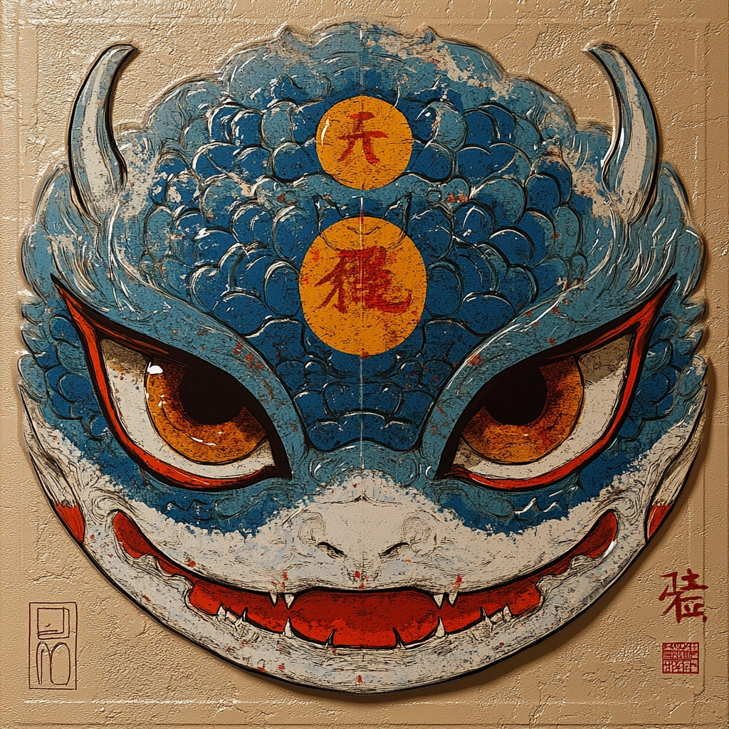 This piece uses vivid color contrasts with a mix of vibrant blues, reds, and yellows that create visual depth. Textural details add richness and complexity, while the spatial arrangement is dynamic and engaging.