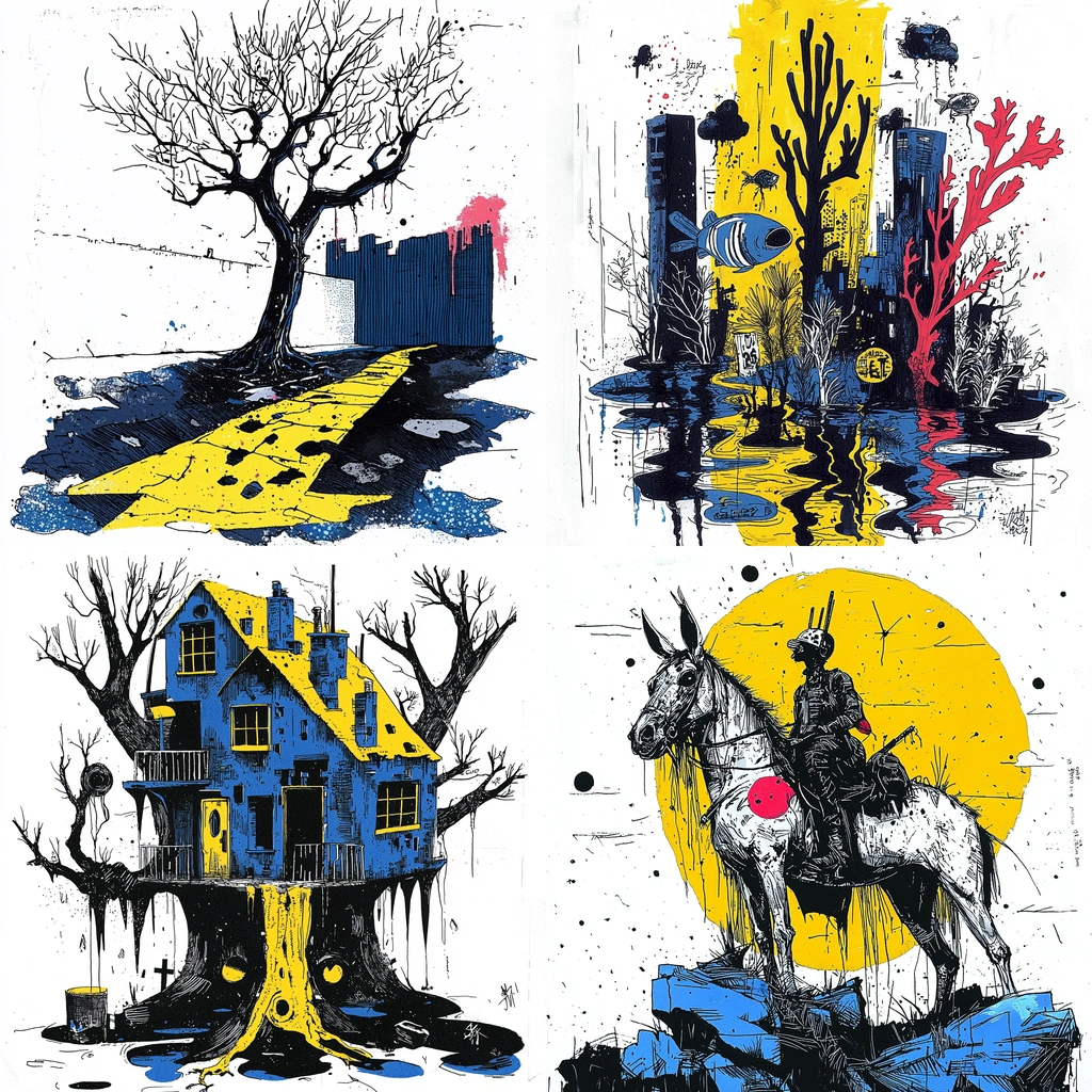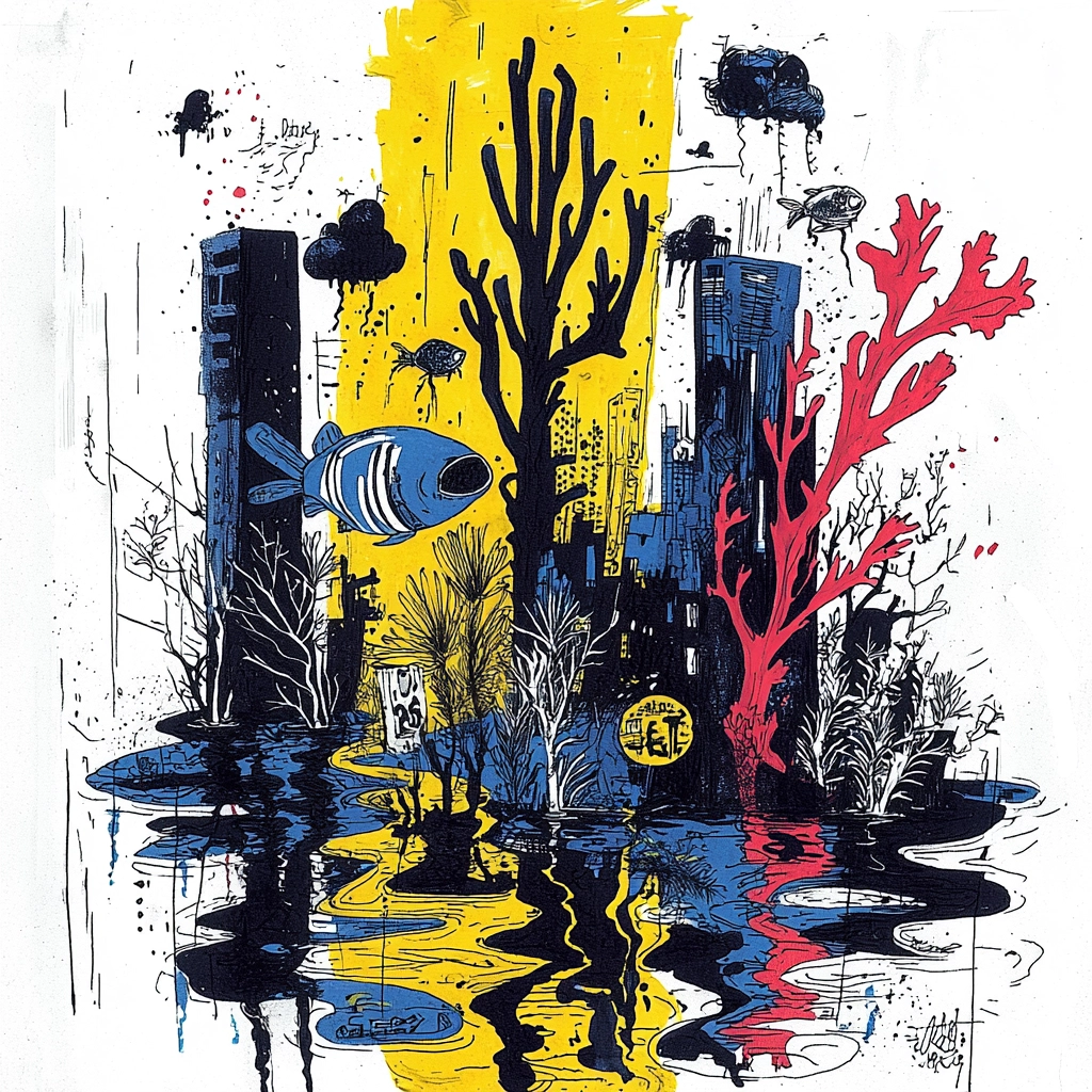 Defined by high-contrast tones, dynamic compositions, and expressive use of primary colors.