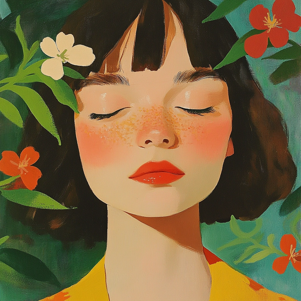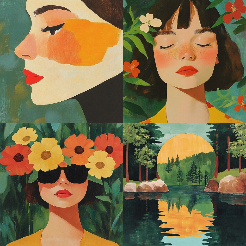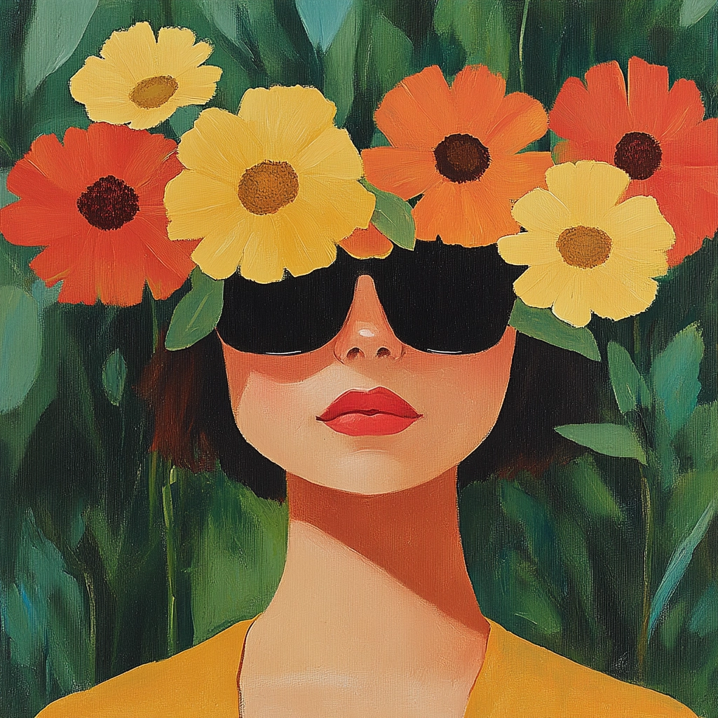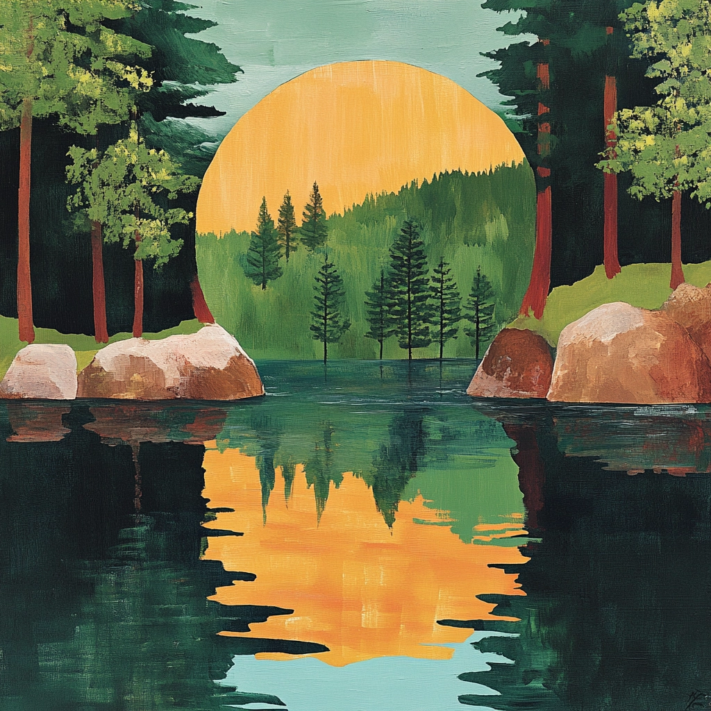 Strong lighting highlights bright colors with sharp contrasts, creating a vivid sense of depth. Texture is smooth, emphasizing solid forms and reflective surfaces, with an engaging spatial distribution.