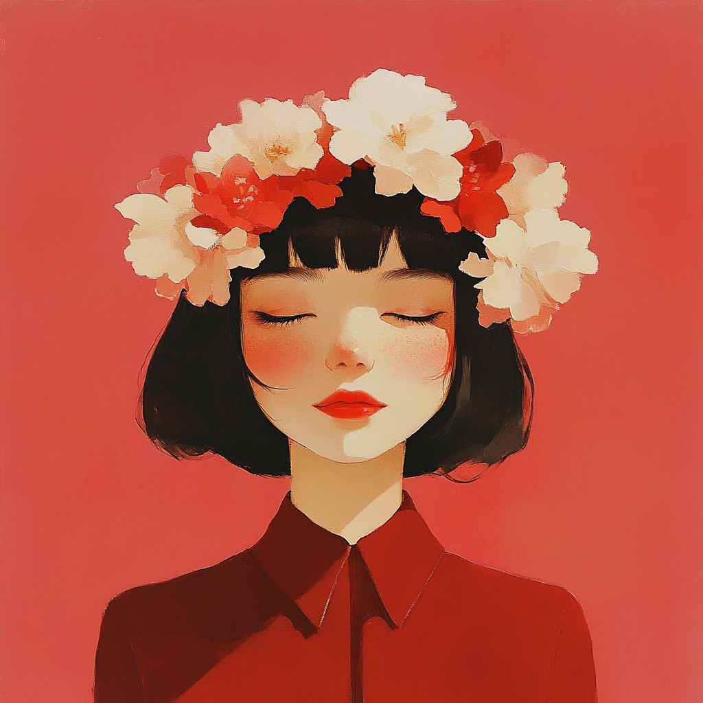 The lighting effects highlight the sharp contrasts between the reds and blacks, creating a striking visual impact. The color characteristics are bold and vivid, while the spatial sense is defined by clear, distinct borders. The texture expression is smooth, emphasizing the simplicity of the forms.