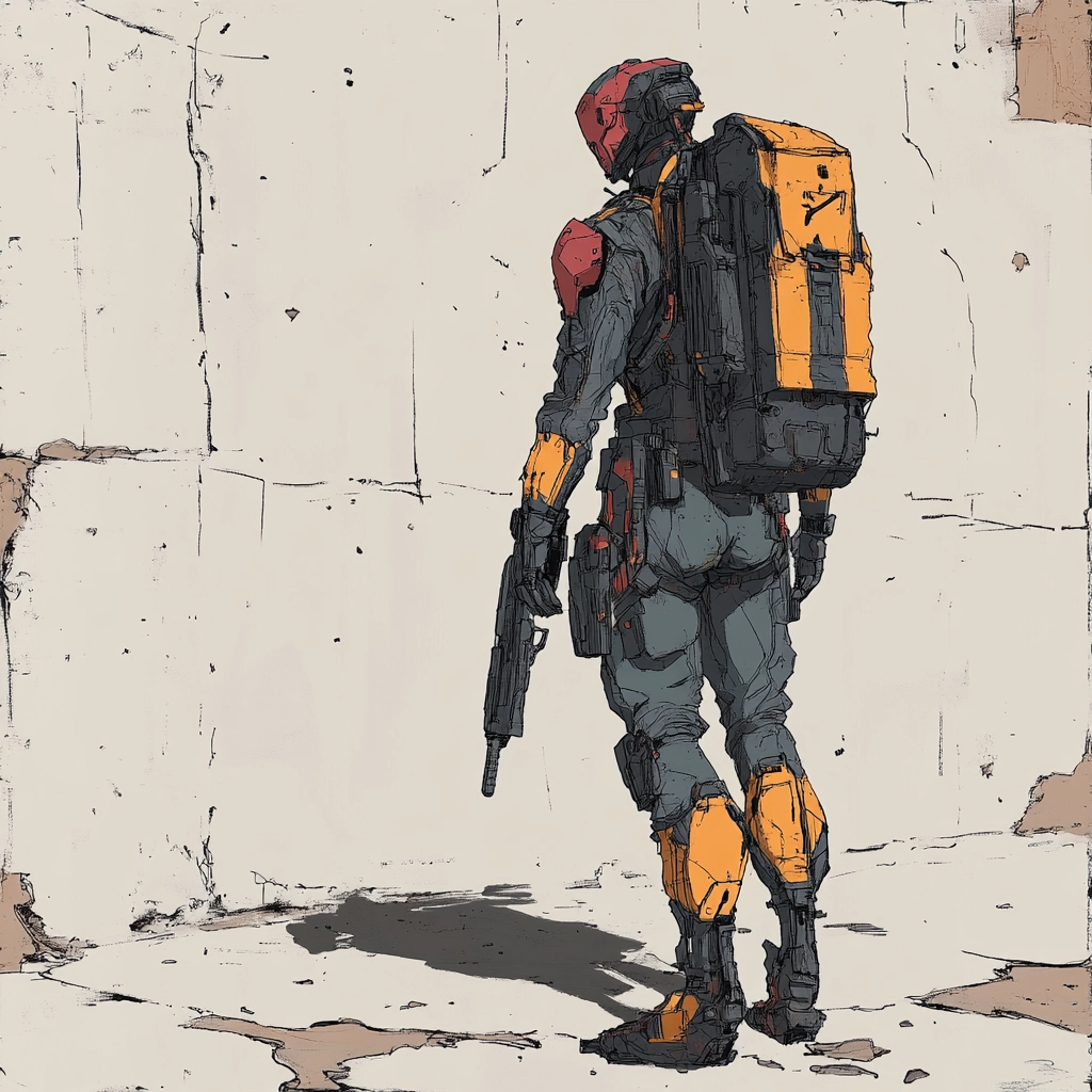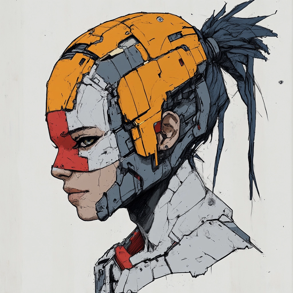 The lighting employs strong contrasts, using bright areas to enhance the bold, graphic nature of the composition. The palette is dominated by saturated oranges and reds against muted grays, creating a vivid sense of depth and texture.