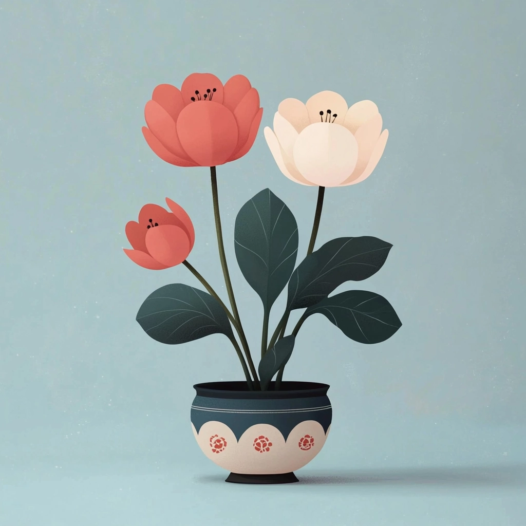 The lighting is even throughout, enhancing the clarity and uniformity of colors. Each hue is displayed in a mild saturation, establishing a consistent visual tone. The composition utilizes space effectively, offering a seamless integration of elements. Texture remains smooth, lending a delicate finish evident in clean, defined contours.