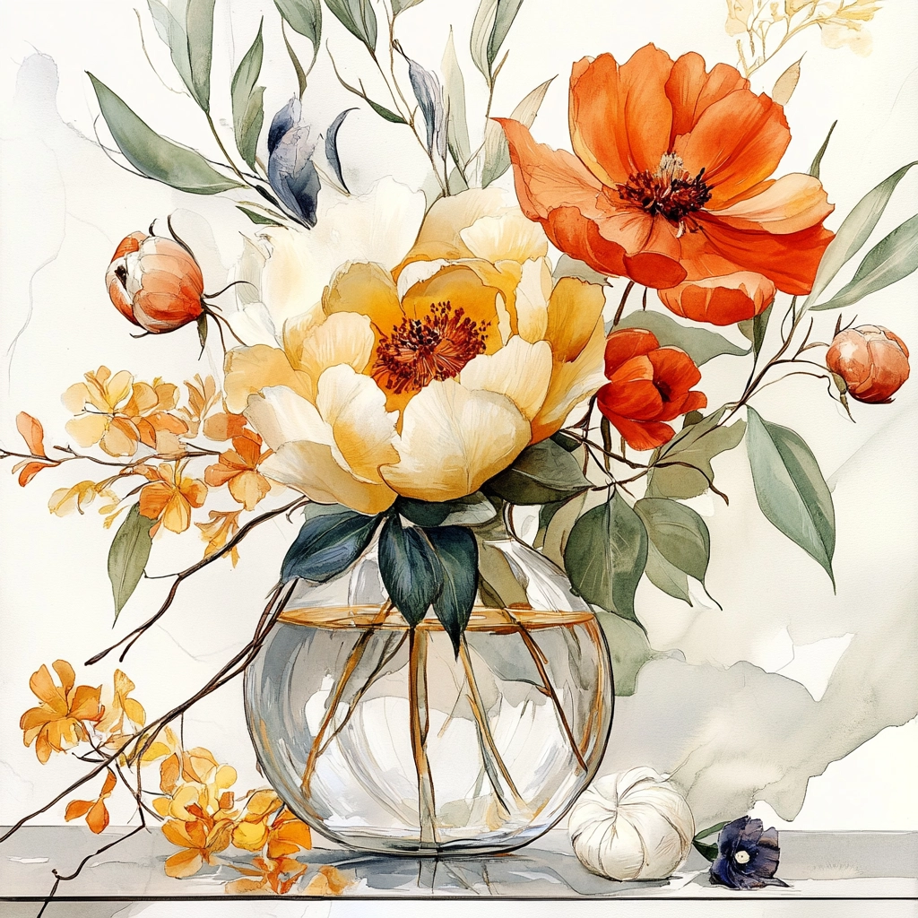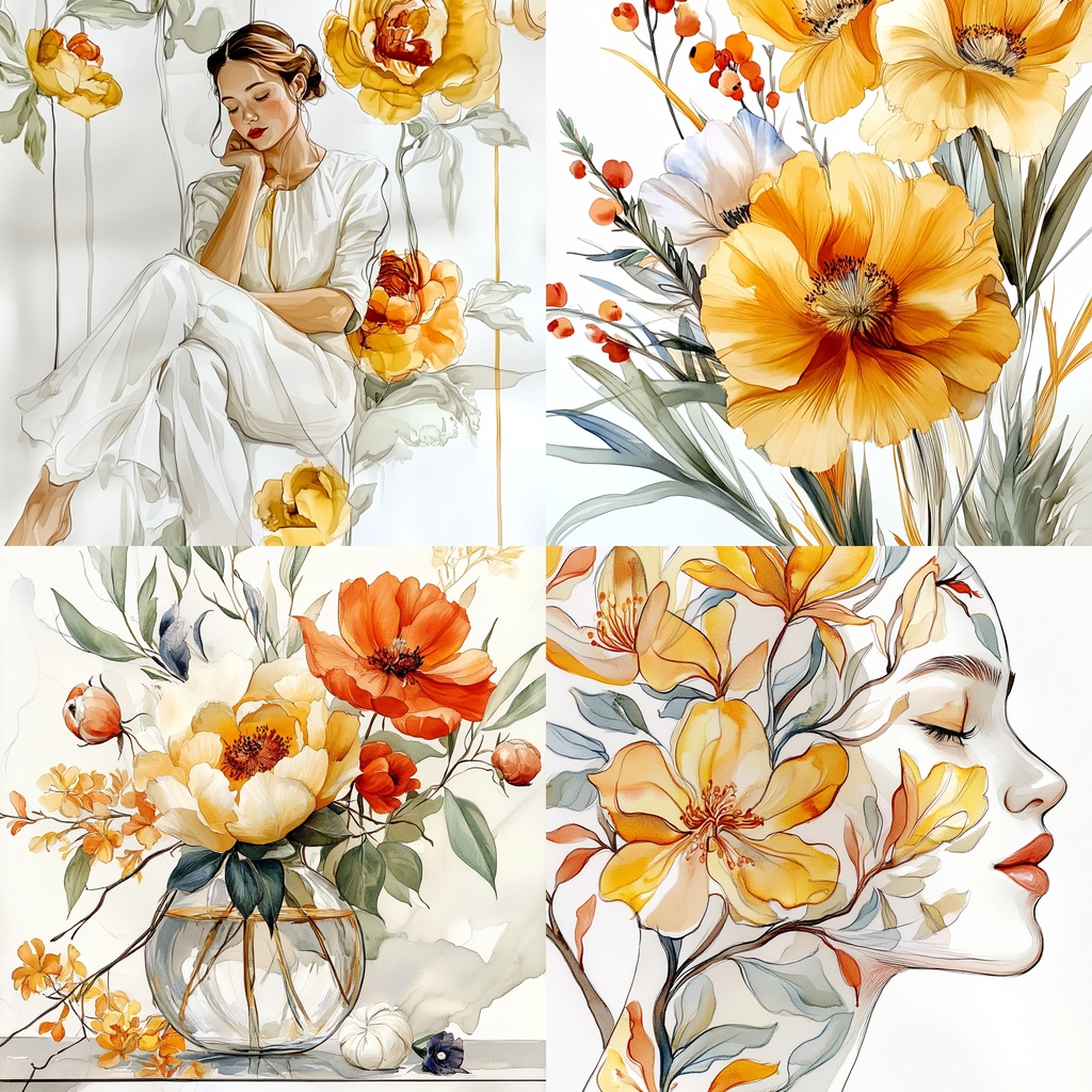 A harmonious interplay of soft hues and floral forms.