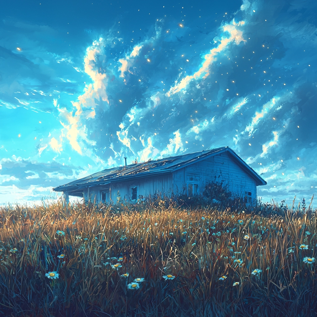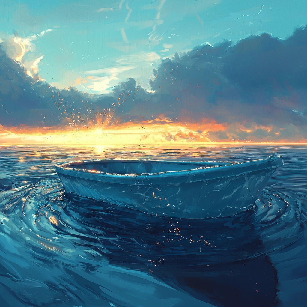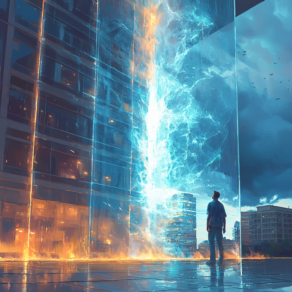 The artwork utilizes vivid lighting effects where cyan and contrasting orange tones dominate, generating a dynamic spatial sense. These colors enhance the texture expression with detailed characteristics, producing a wide contrast that defines the visual impact.