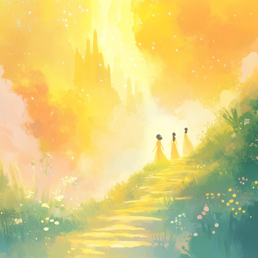 The artworks utilize gentle, luminous lighting to blend vibrant, pastel shades, creating a sense of open space. Textures are smooth and ethereal, enhancing fluidity and softness, with intricate detailing adding subtle depth to the overall composition.