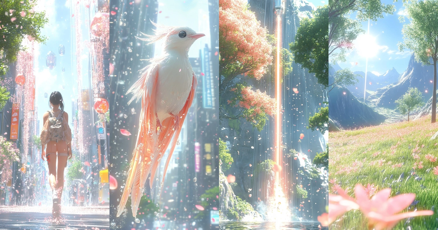 Vivid juxtaposition of urban and natural with radiant highlights.
