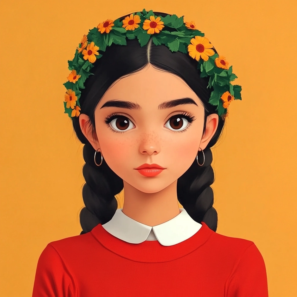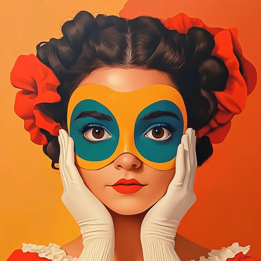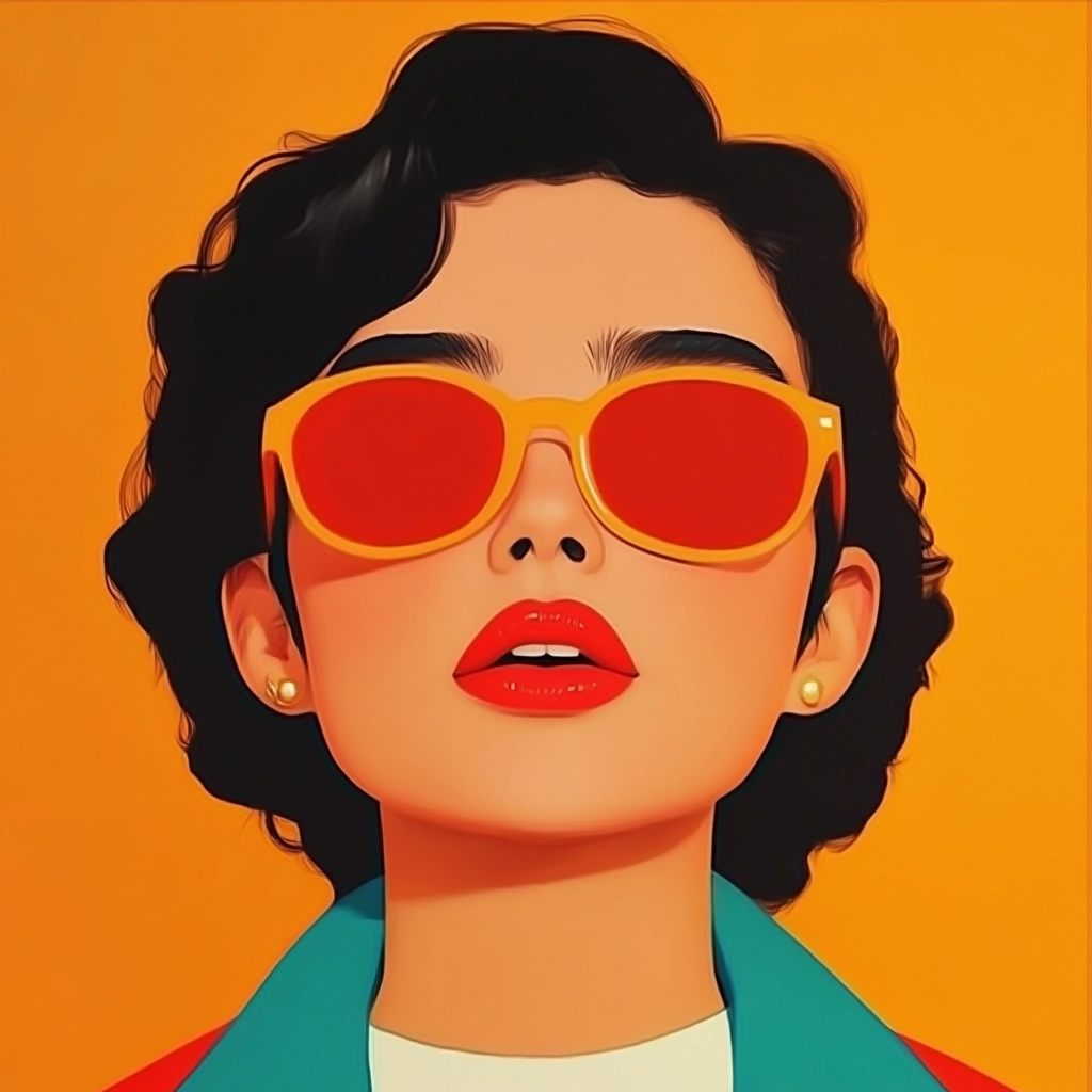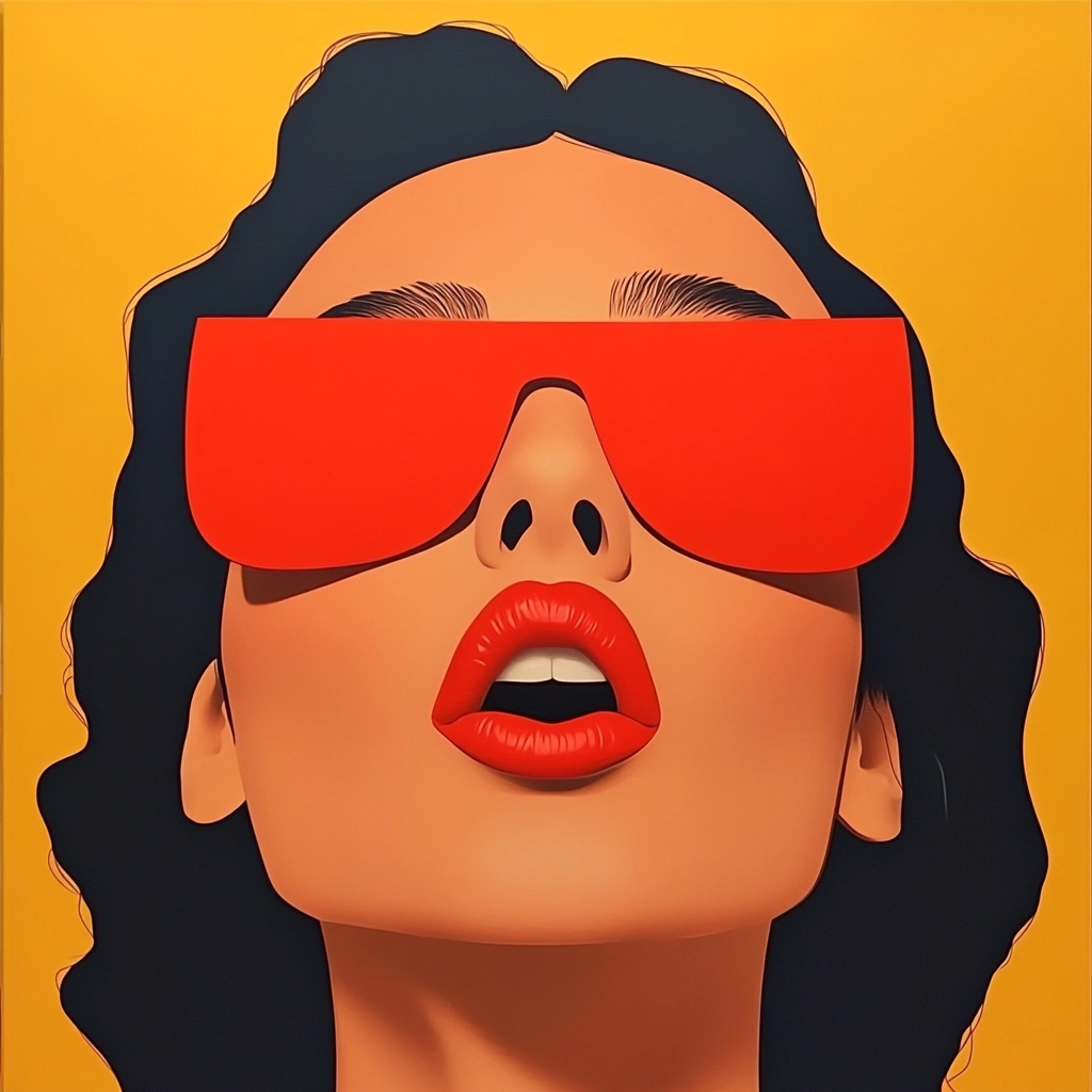 Rich, saturated red and orange dominate, complemented by contrasting black elements. The artwork features flat spatial arrangement and a smooth texture surface, with sharp lines enhancing visual crispness. Lighting is even, emphasizing a vibrant, lively feel without shadows.
