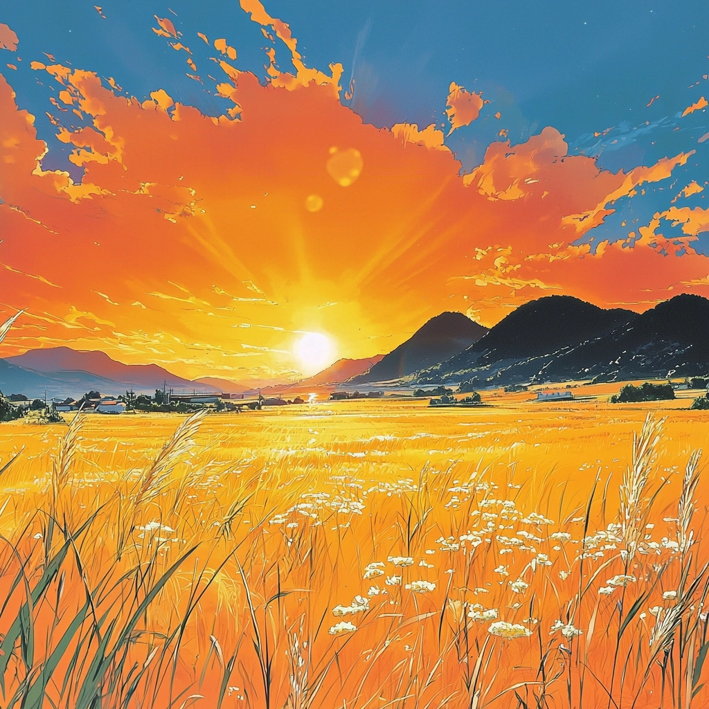 A vibrant composition featuring bold contrasts with warm and cool hues.