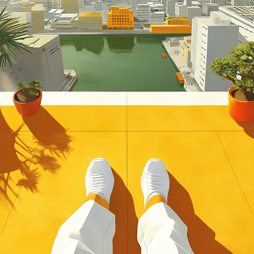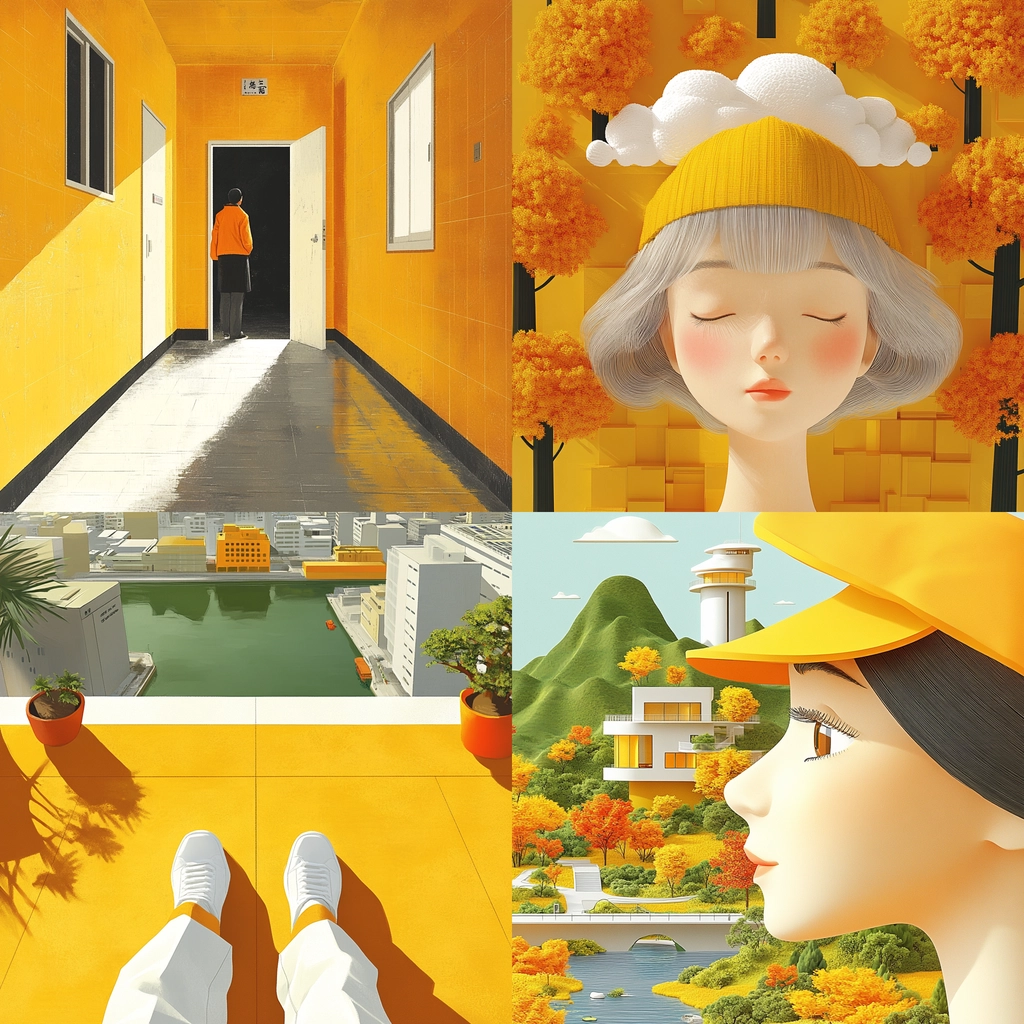 Vivid warm hues with minimalistic compositions featuring geometric precision.