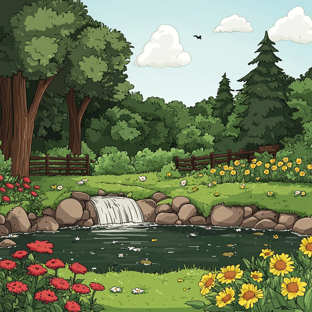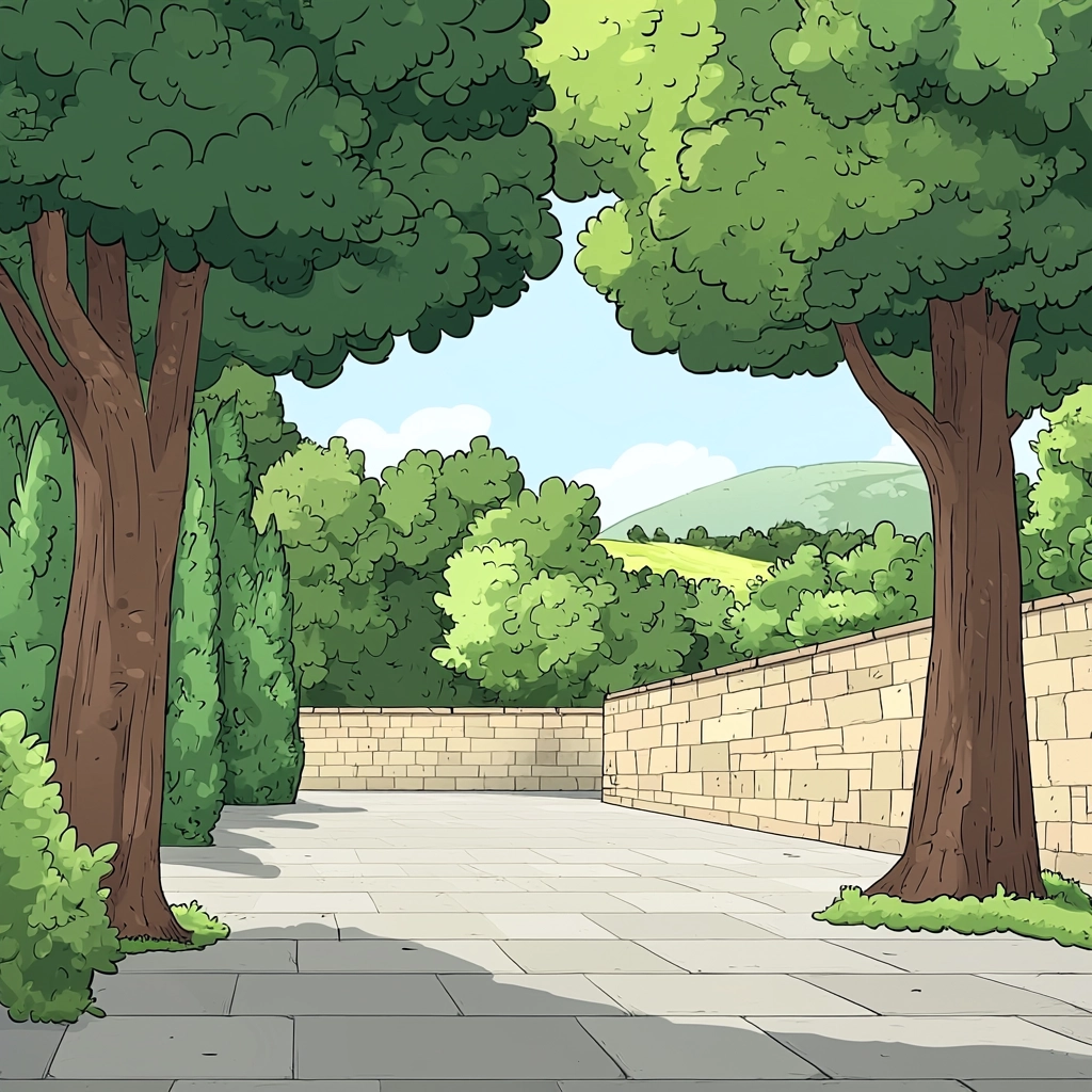 The lighting is even, enhancing clarity and visibility. Colors are contrasting and bold, defining spaces and forms distinctly. The textures are smooth, with line work creating clear boundaries.