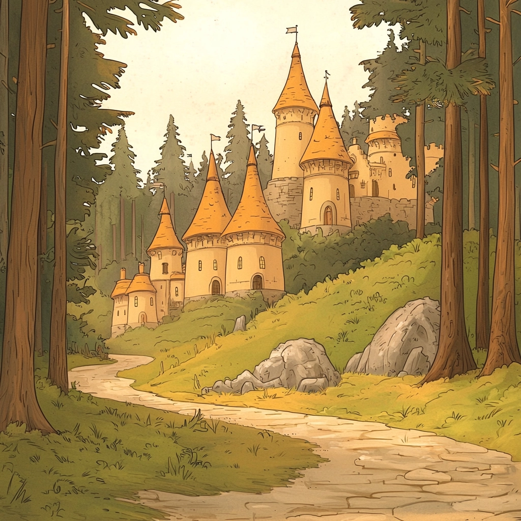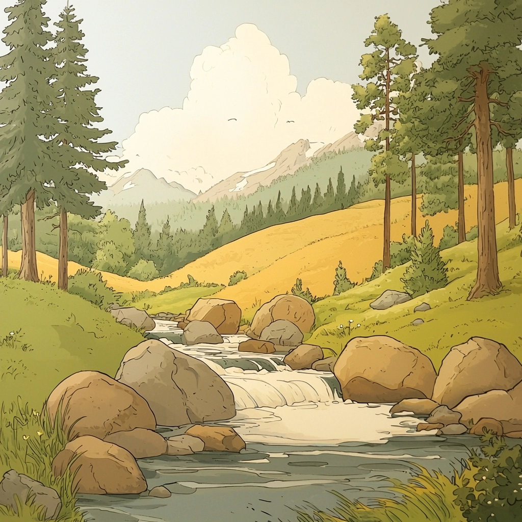 The lighting incorporates soft highlights that enhance the warm tones, creating gentle contrasts. Colors are muted and harmonious, suggesting cohesion in the setting. The texture is expressed through softened lines to imply a gentle environment.