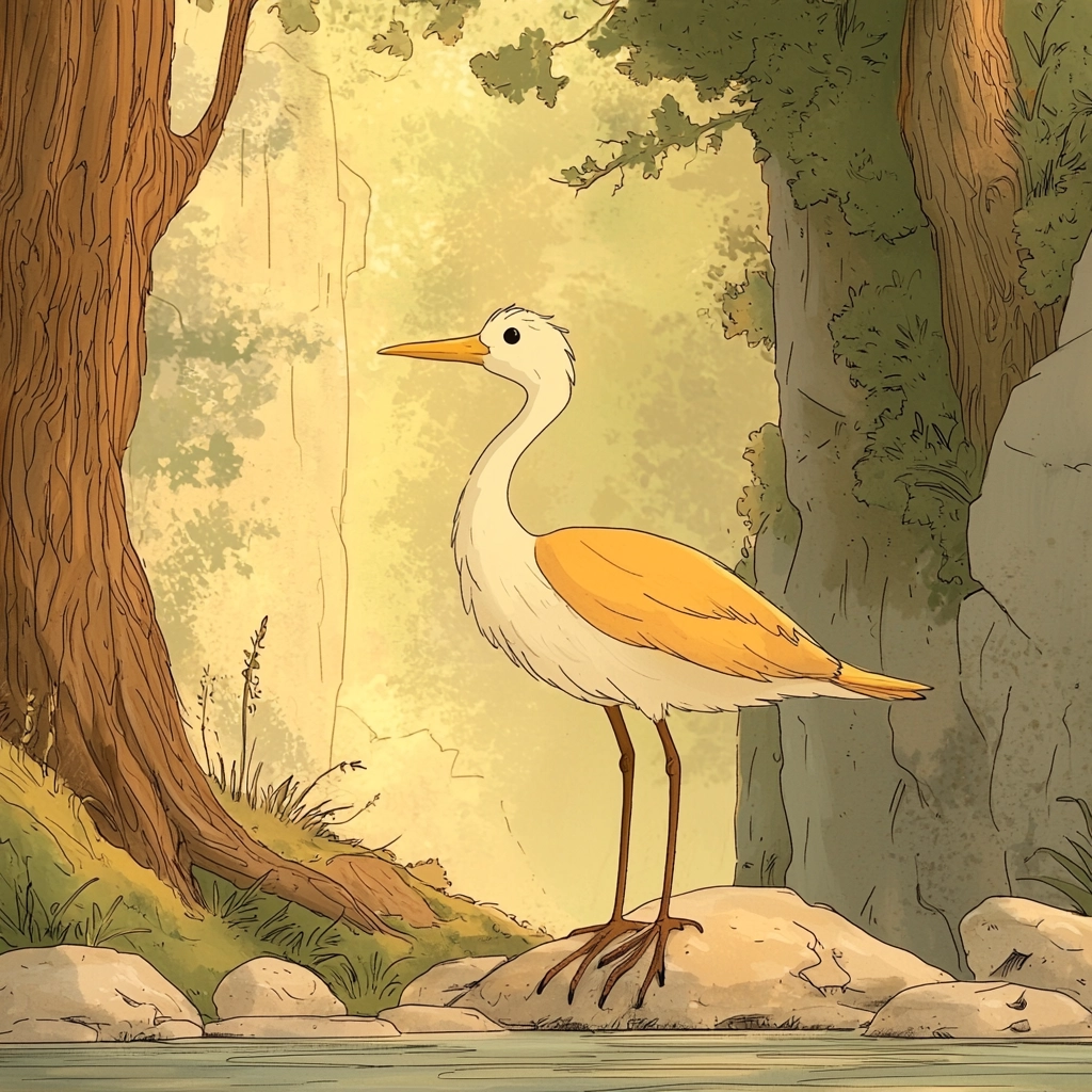 Warm greens and earthy browns dominate the balanced, whimsical composition.