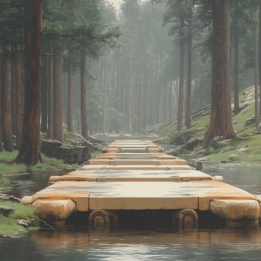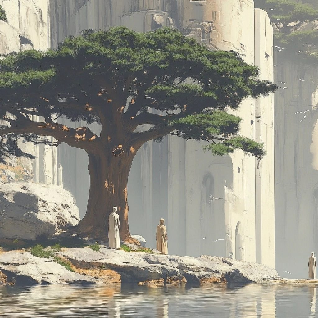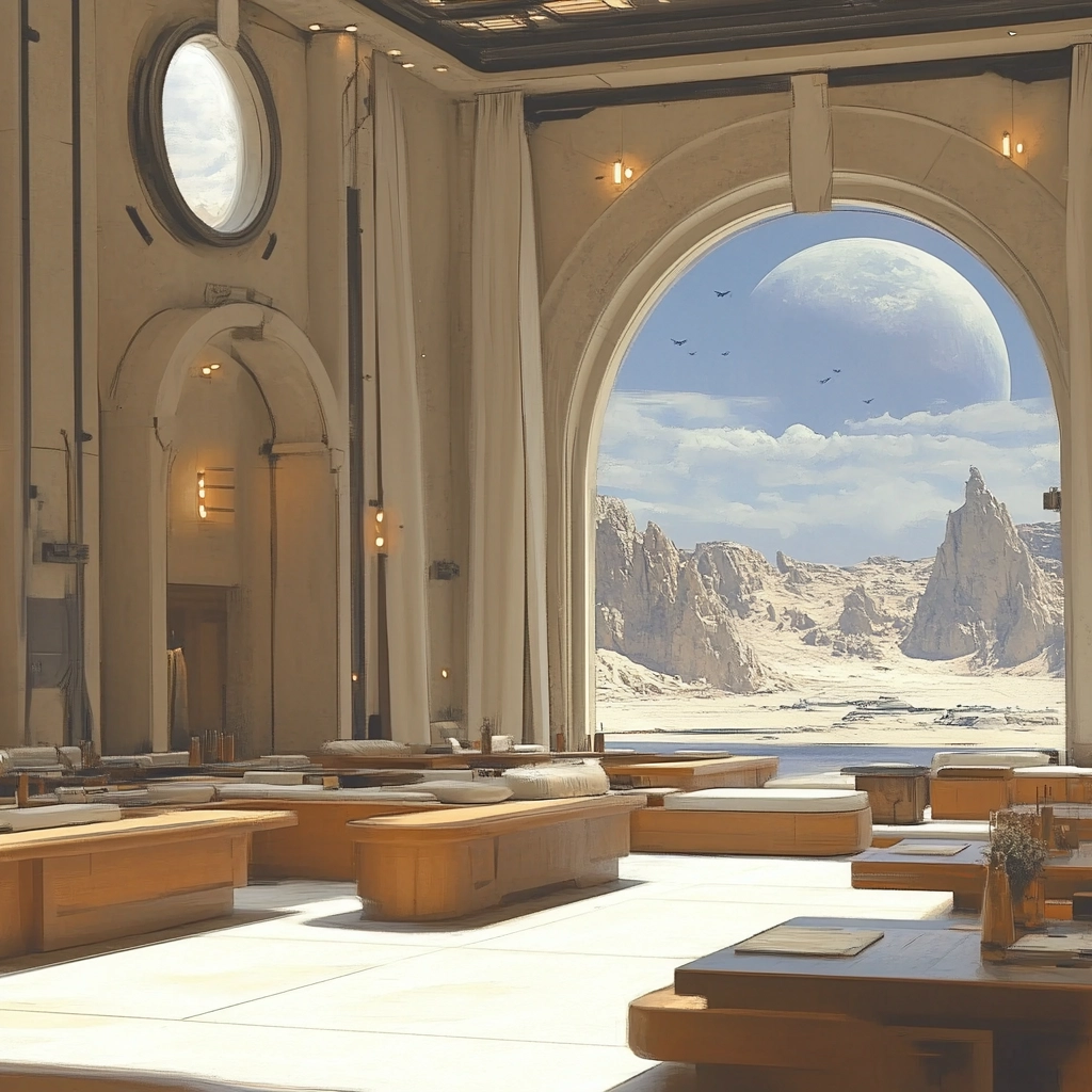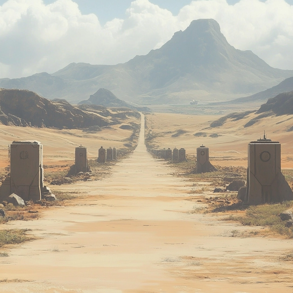 Featuring cinematic lighting that emphasizes depth, with balanced hues of green, beige, and gray. It showcases a natural texture that enhances the sense of realism and spatial vastness.