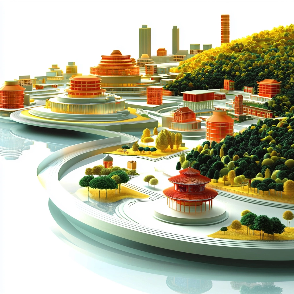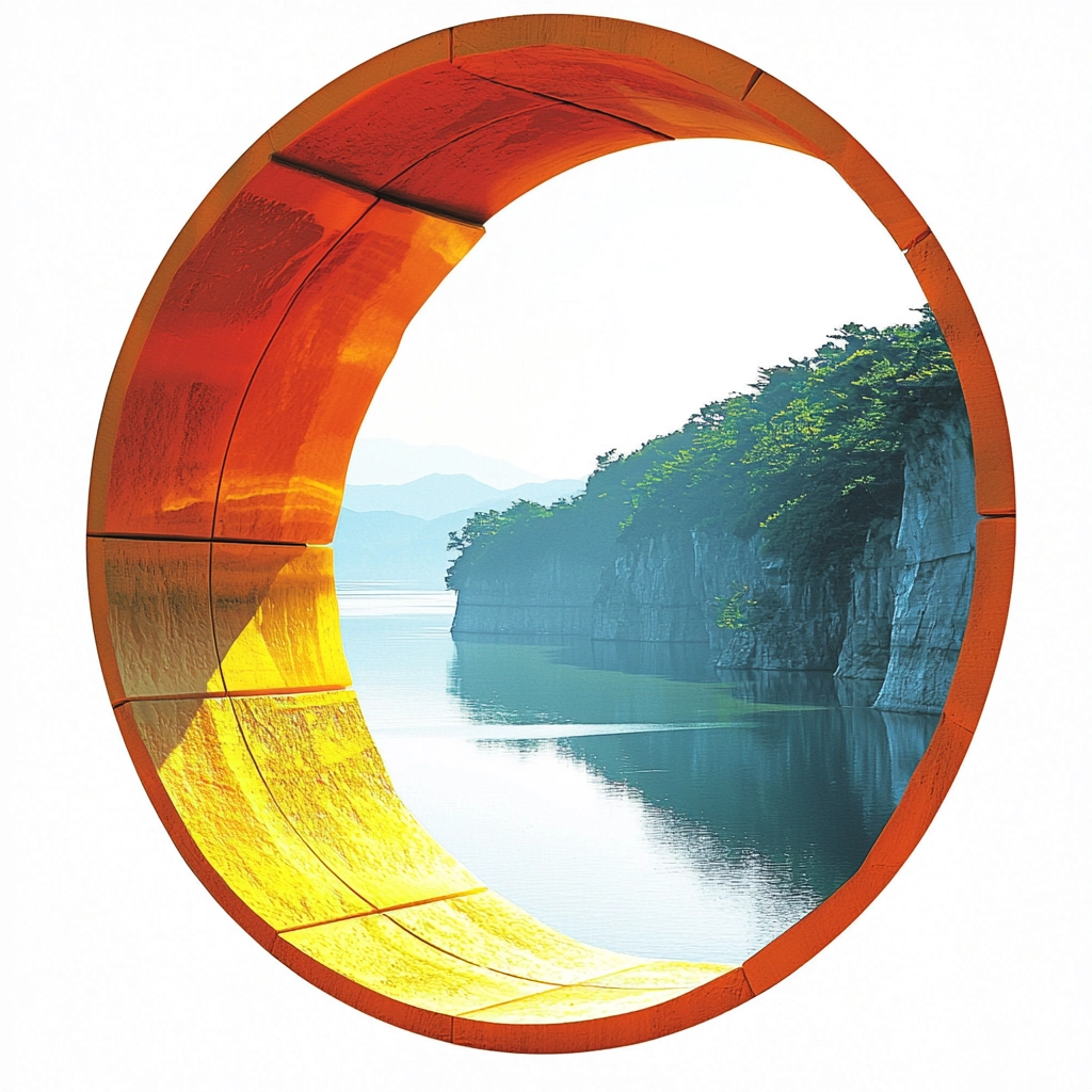 The artwork utilizes warm tones to highlight round shapes, creating a lively movement. Highlights and shadows give a strong sense of depth, enhancing the three-dimensional effect. The use of specific color gradients reinforces the circular forms, lending a feeling of harmony to the composition.