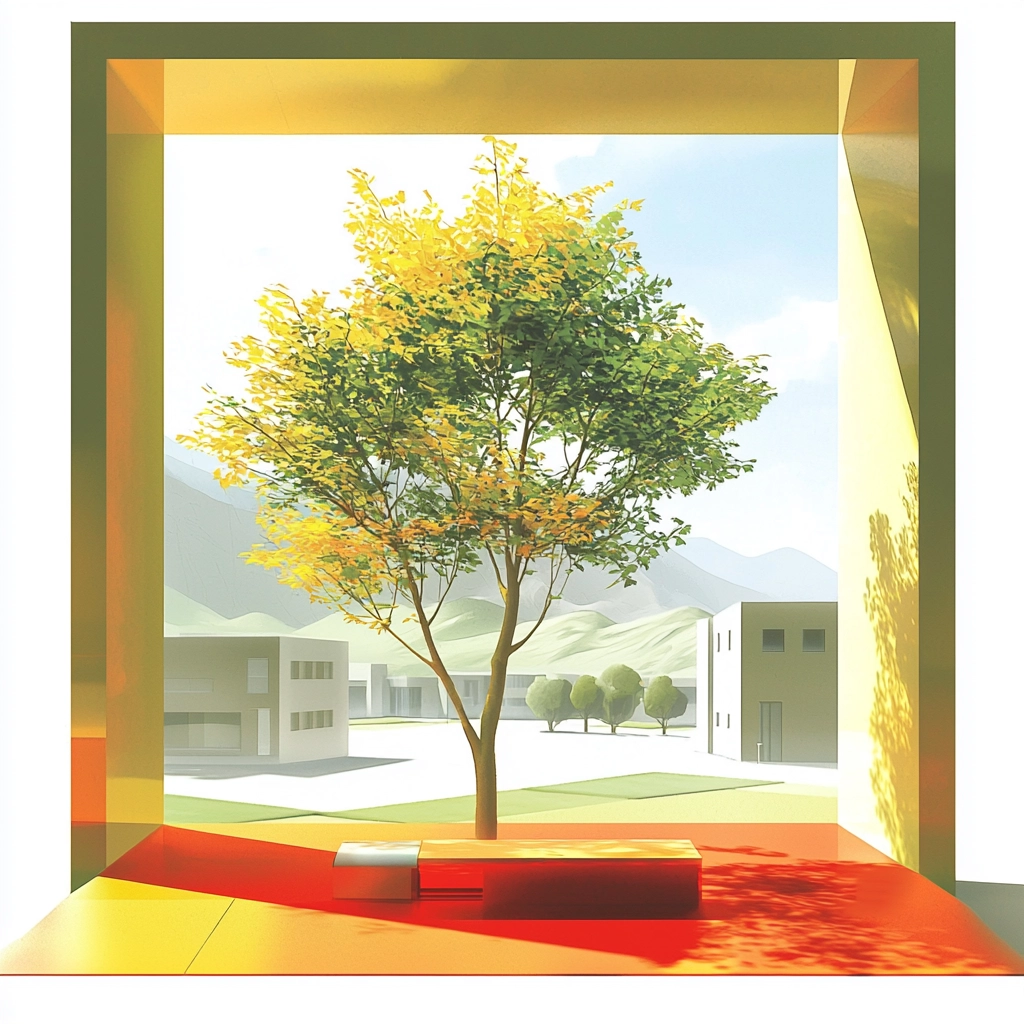 Bright and vivid colors create a dynamic and playful spatial arrangement.