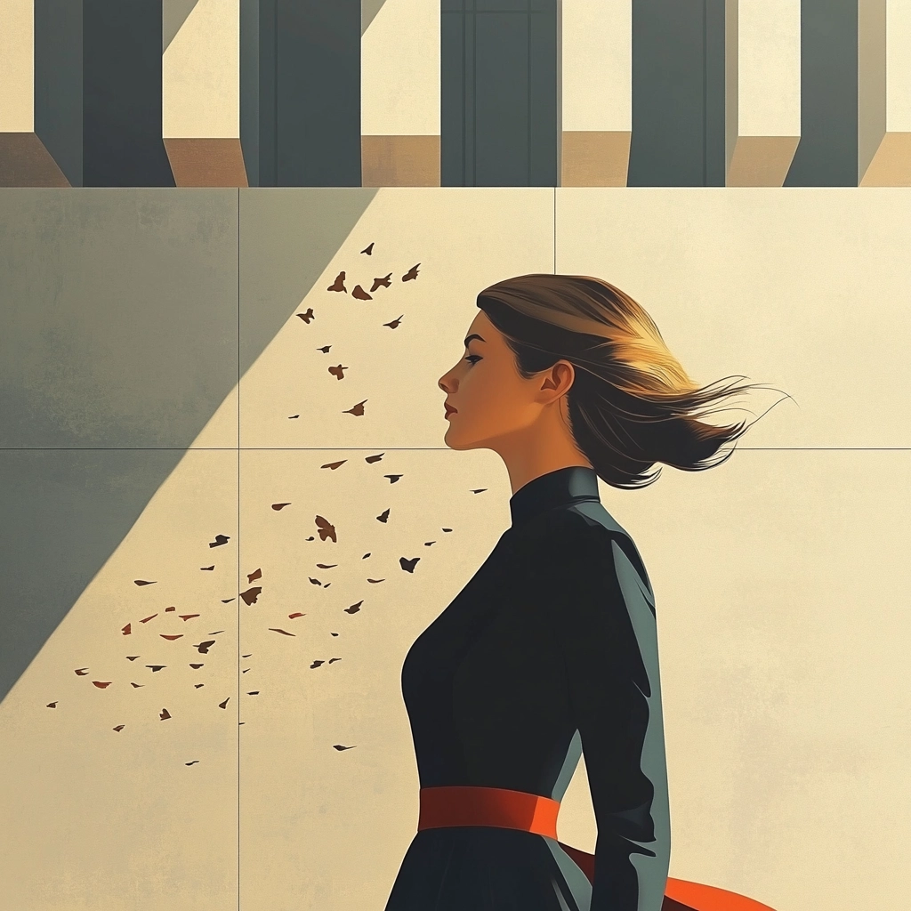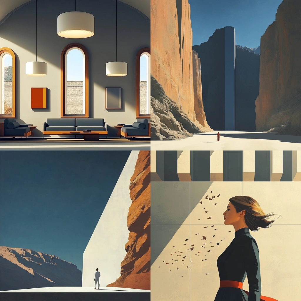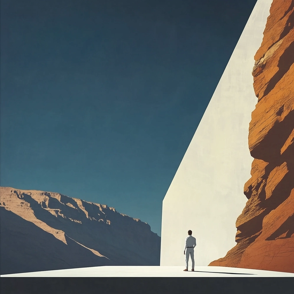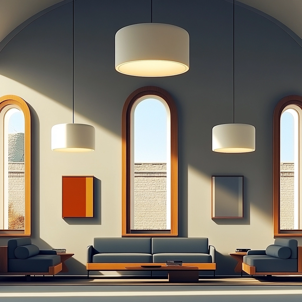 The lighting creates distinct shadows, emphasizing clear geometric forms. Deep colors instill a sense of depth, while smooth textures enhance a minimalist spatial presentation.