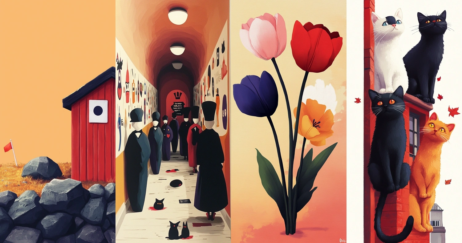 Vivid colors evoke a striking contrast in flat aesthetic.
