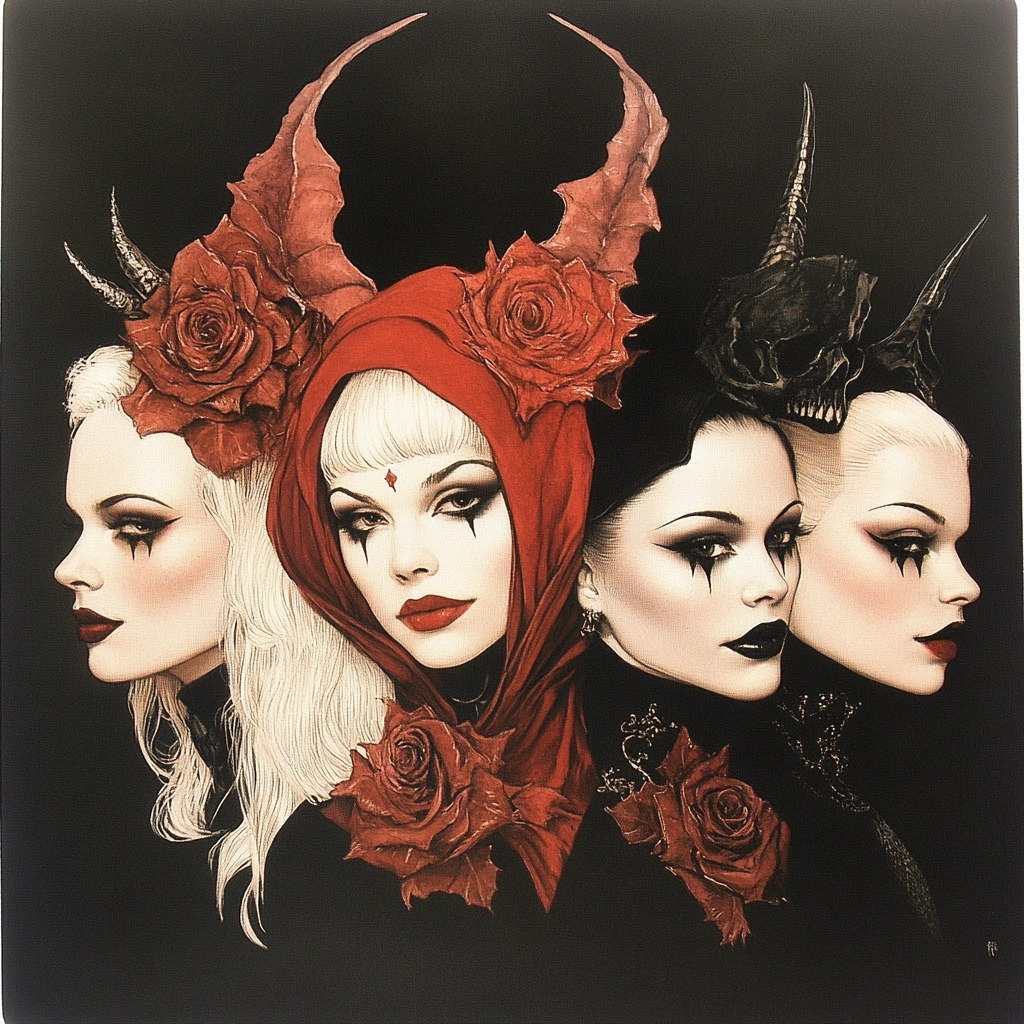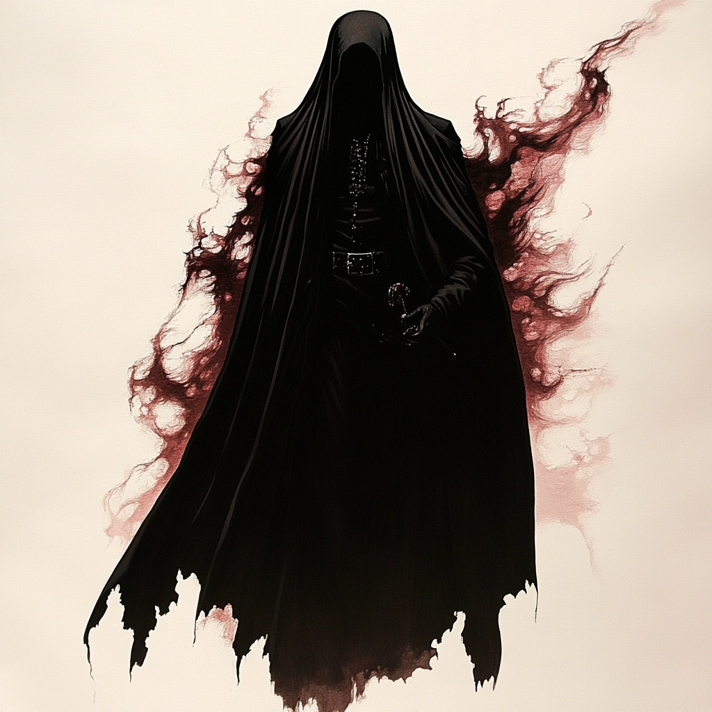 The interplay of dark and light tones accentuates the rich reds and blacks, creating a sense of depth. Textural details are highlighted with sharp lighting effects enhancing dramatic contrasts.
