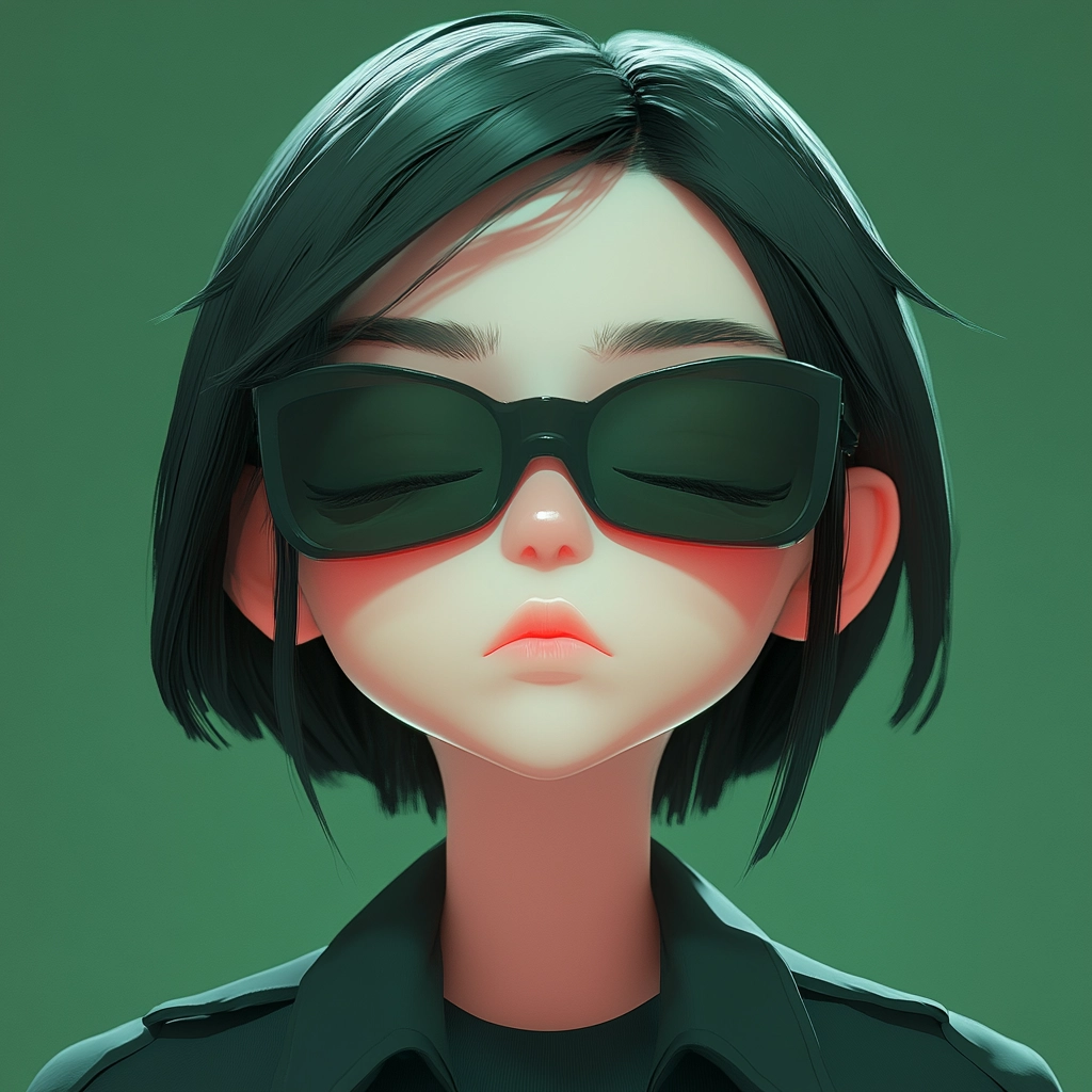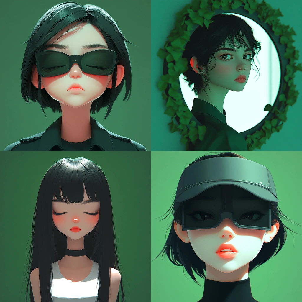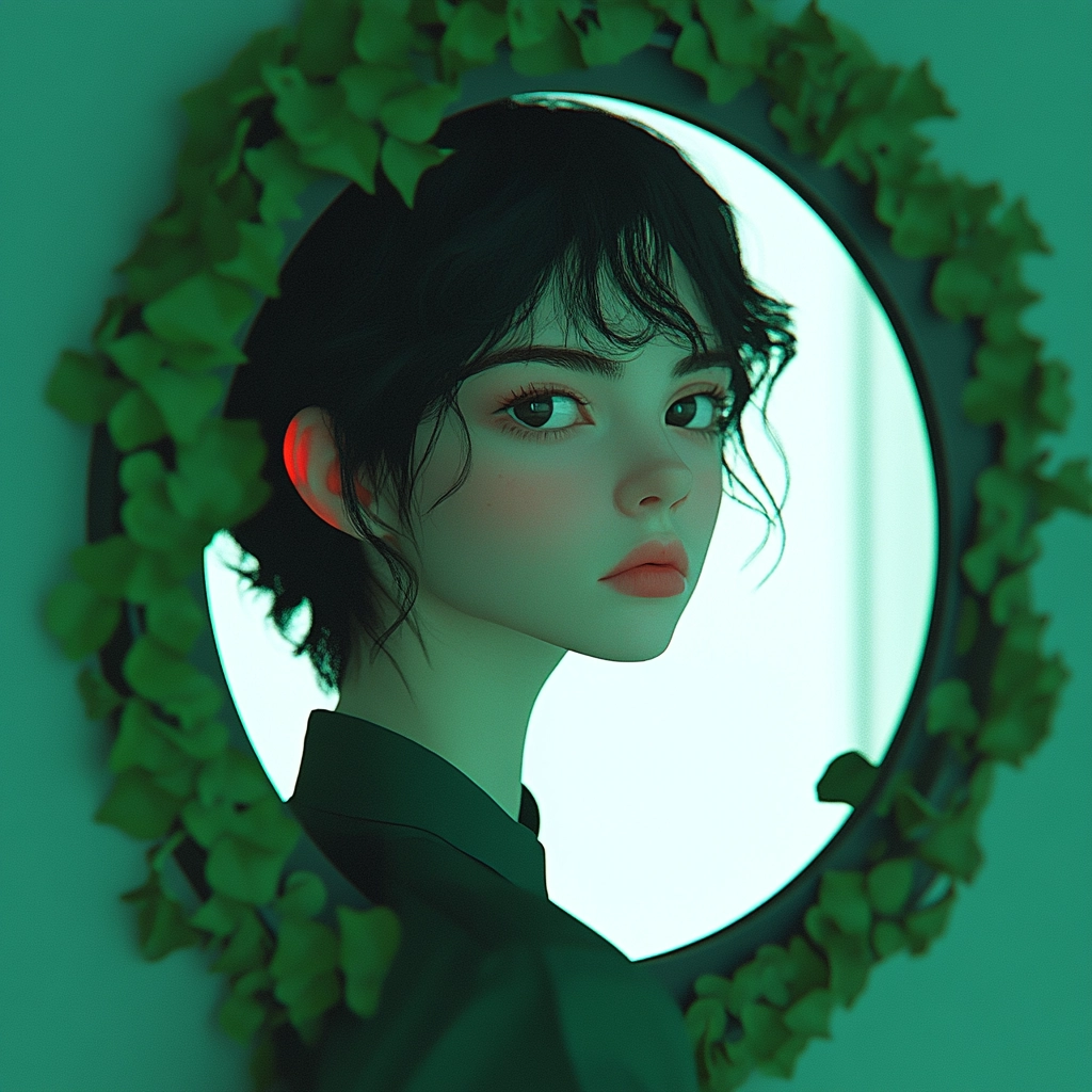 The lighting creates smooth gradients across the elements, enhancing depth. The green saturates as the primary hue complemented by cool, muted tones. Texture is smooth and consistent without harsh outlines.