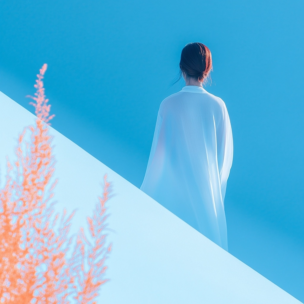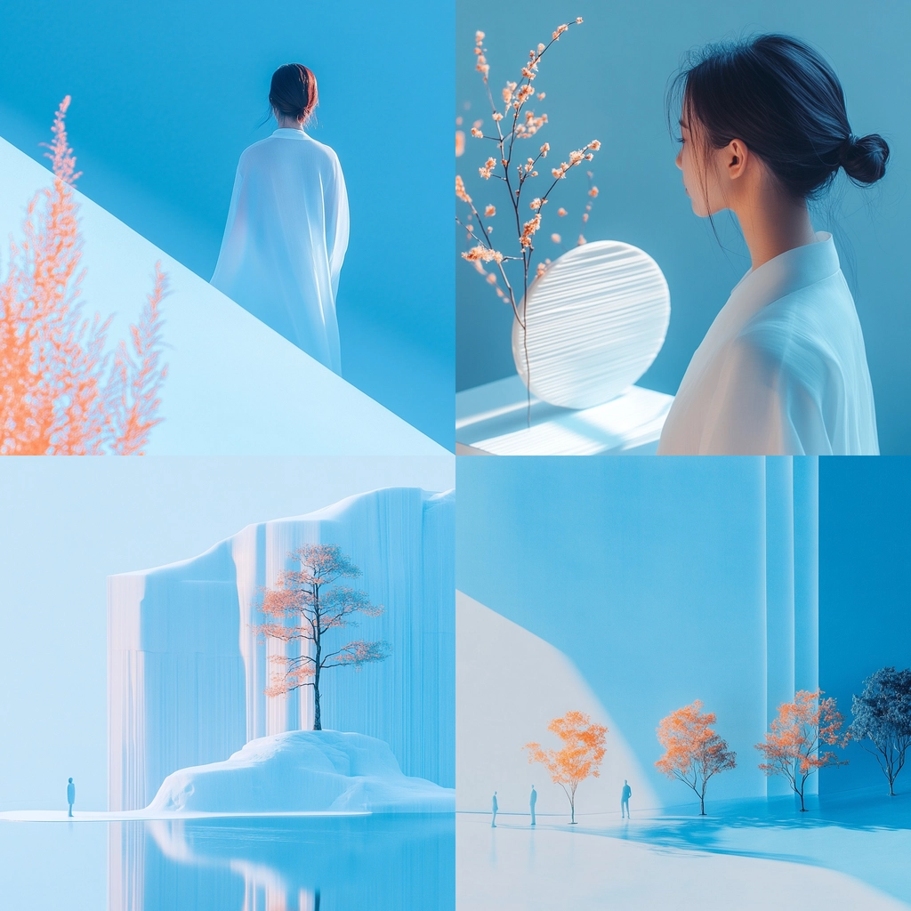 Light and soft hues contrasted with sharp delineations and minimalistic composition.