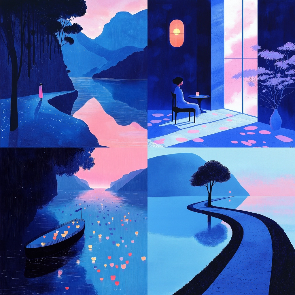 A serene interplay of cool blues and warm pinks, creating visual harmony.