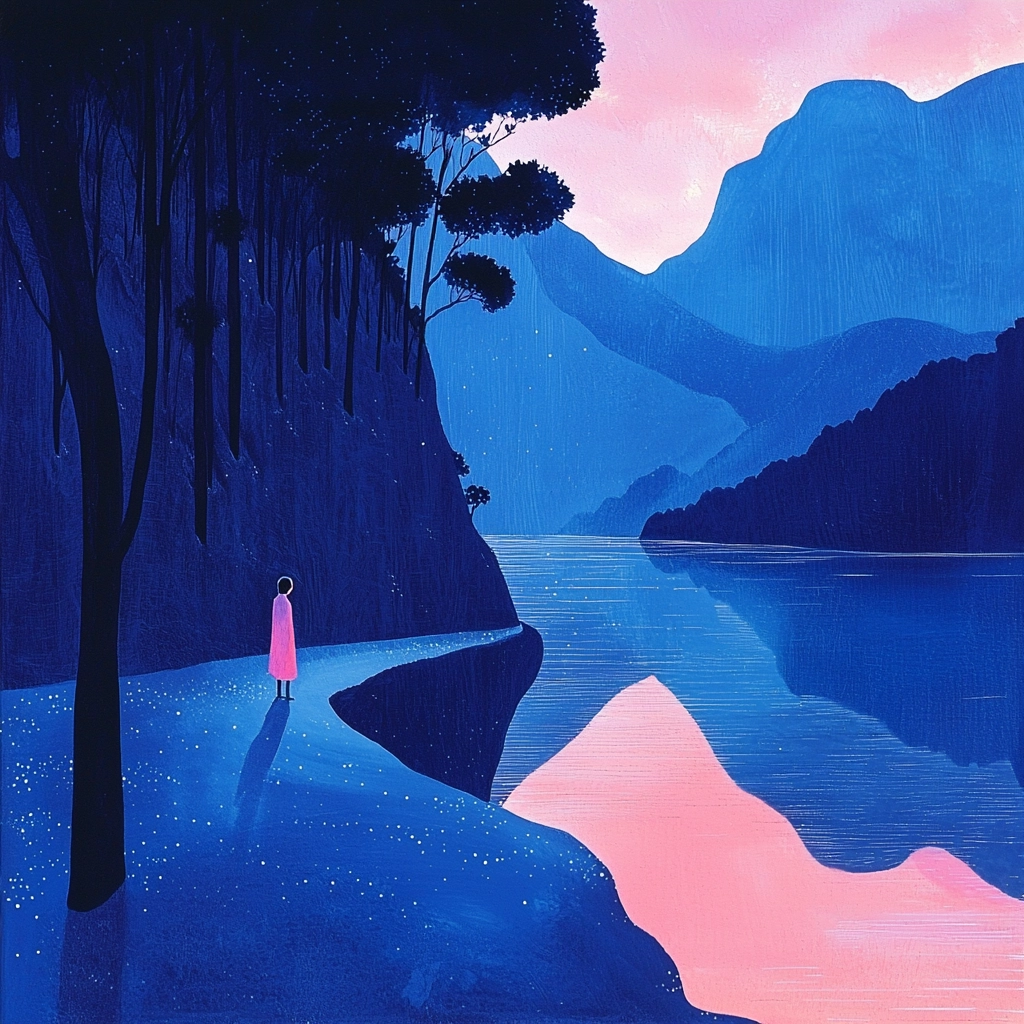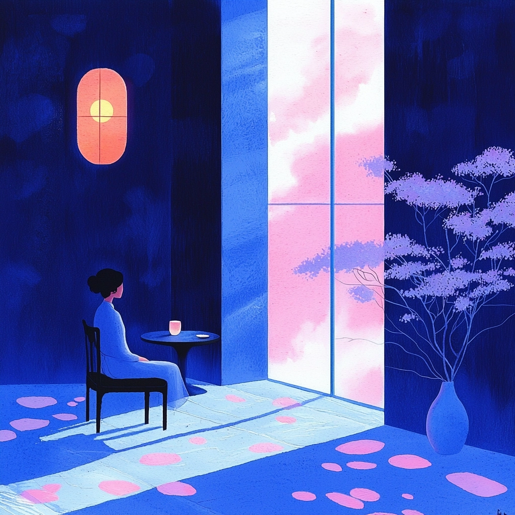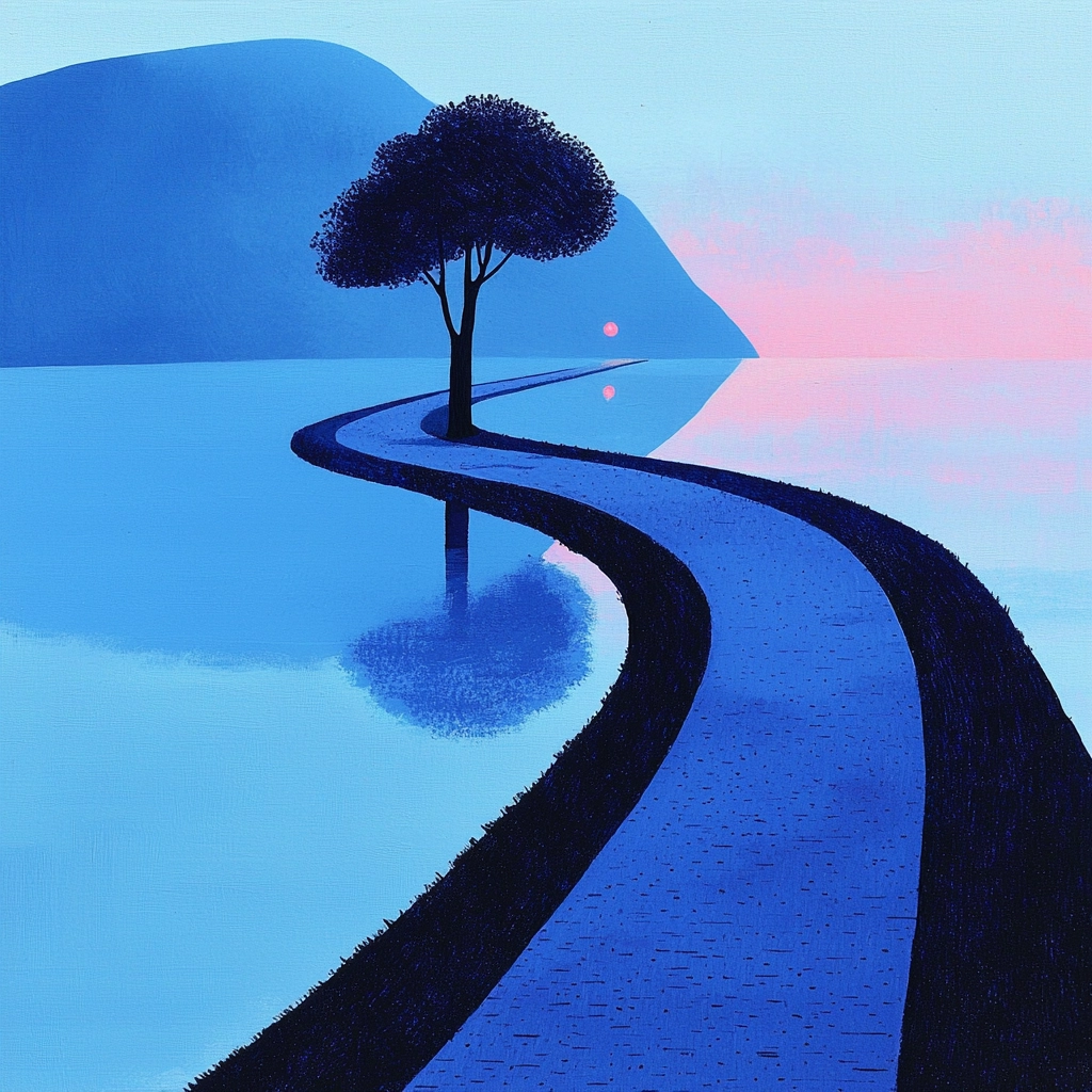 The composition utilizes soft, diffused lighting, enhancing the juxtaposition of vivid blues and gentle pinks. Spatial elements are defined by subtle gradients, while texture remains consistent and smooth, allowing colors to communicate depth and dimension effectively.