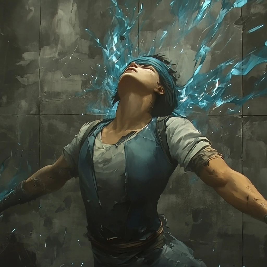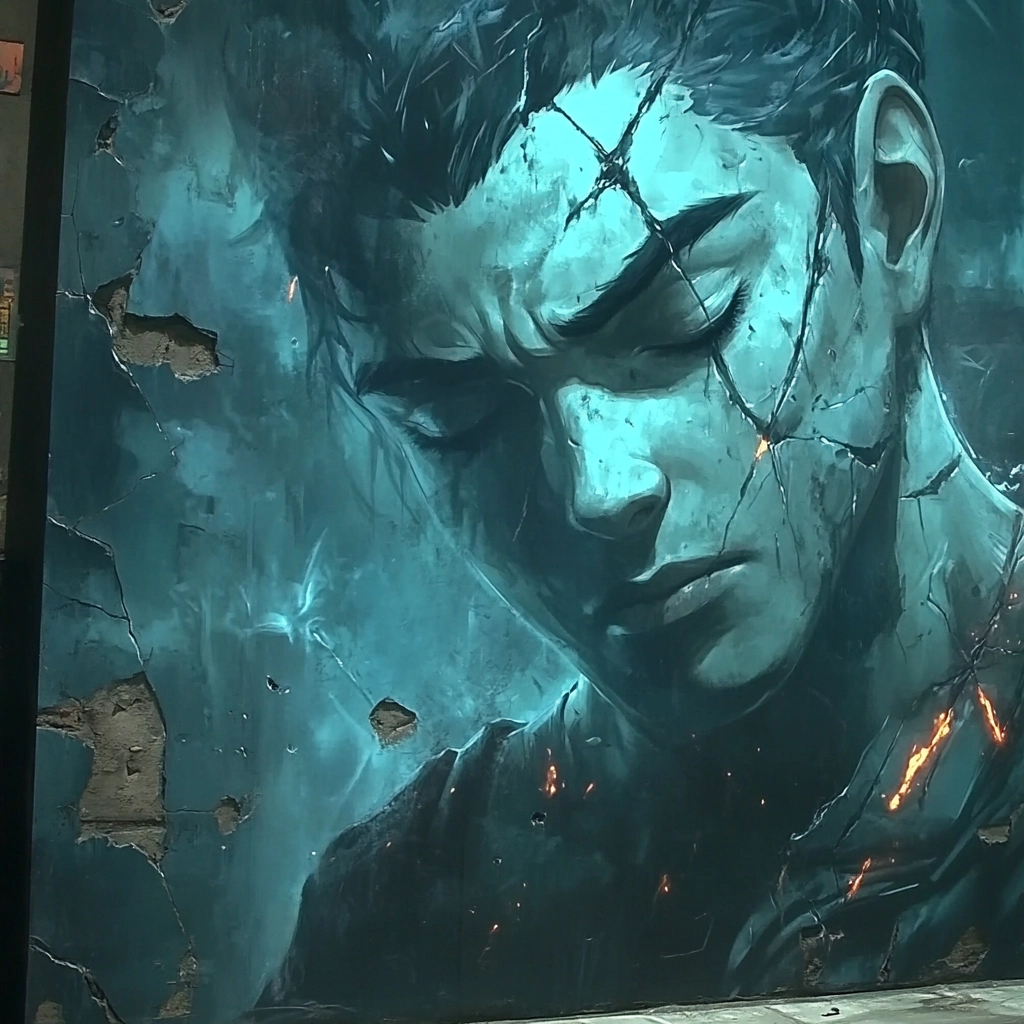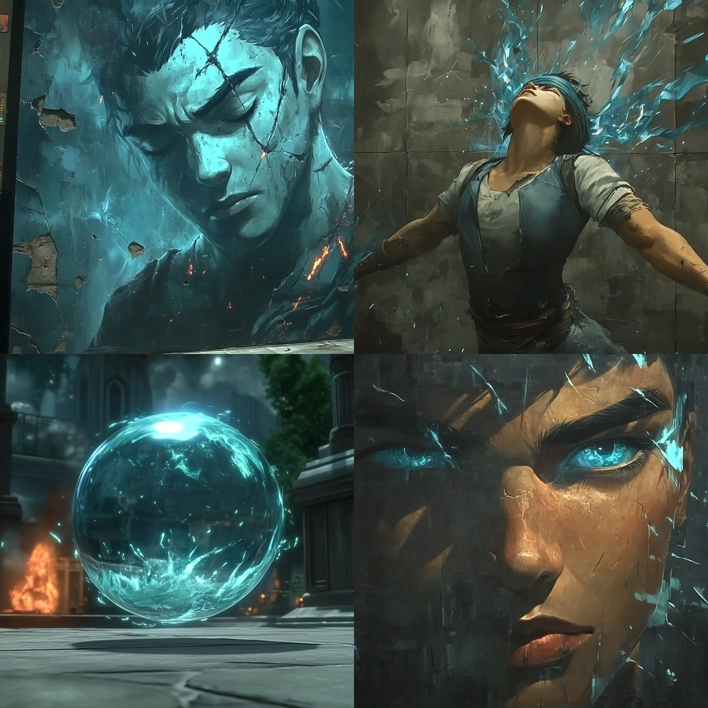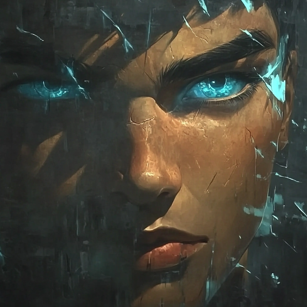 A mix of cool tones and dynamic composition marked by surreal elements.