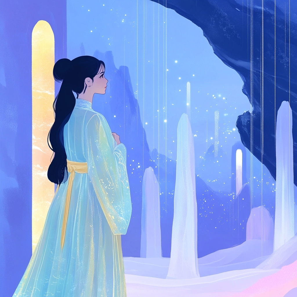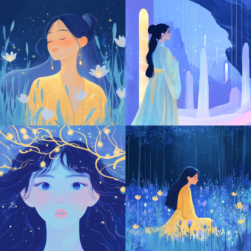 Soft, ambient lighting enhances texture with gentle color transitions, increasing spatial depth perceptibility. Delicate interplay of light and shadow creates movement, while gentle, flowing lines complement the vivid color contrast.