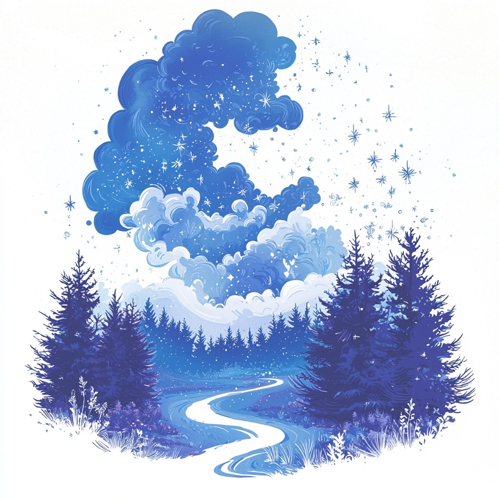 Dominated by cool blues with white highlights, creating a cohesive and textured composition.