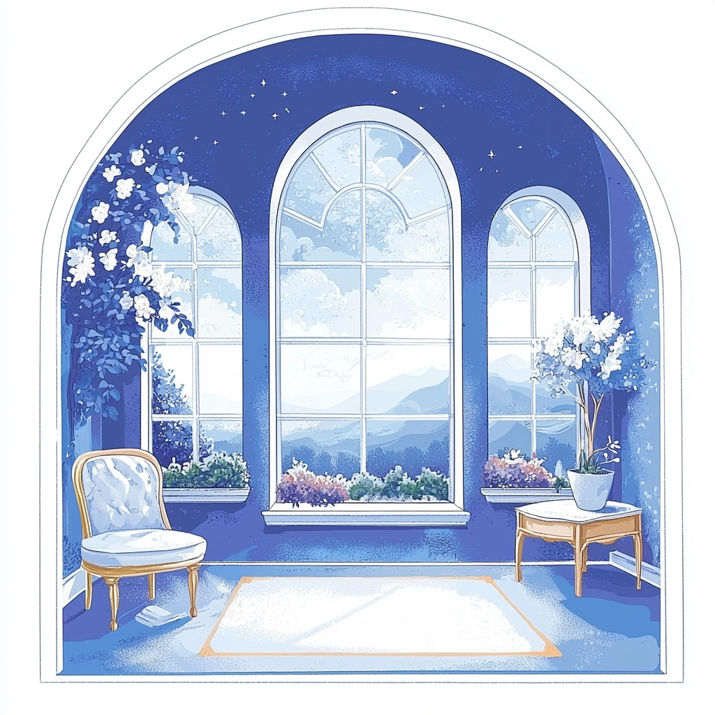 The consistent use of cool blue hues is enhanced by soft white accents, imparting a sense of depth. The interplay of smooth gradients and delicate edges invites interest to the subtle layering, with the lighting illuminating detail against a creamy backdrop.