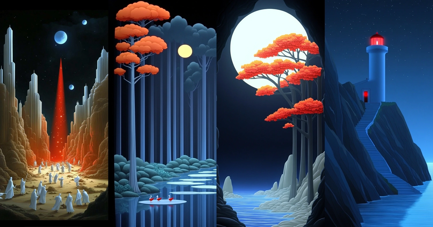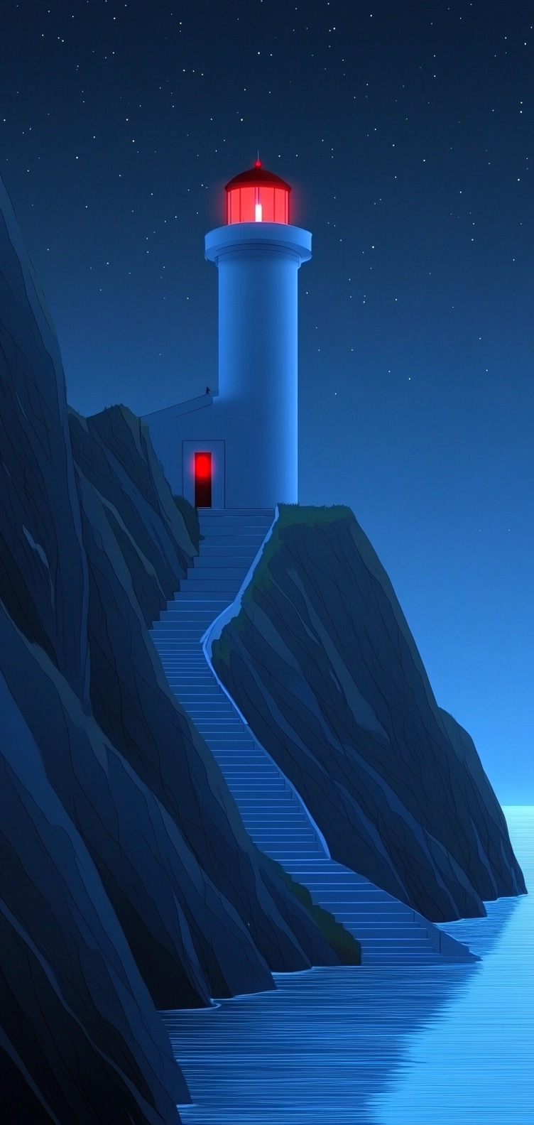 Sharp lighting contrasts with deep shadows enhance spatial dynamics, using a smooth gradient to emphasize luminous effects against monochrome backgrounds, creating a stark contrast in texture.