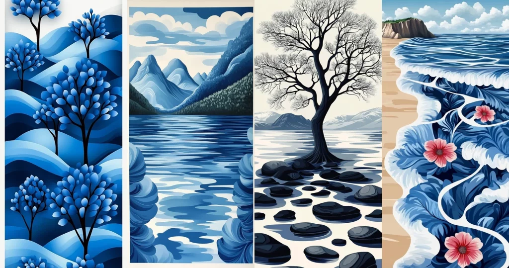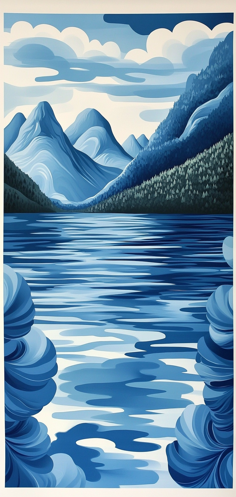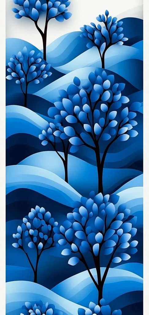 The lighting is even, enhancing the uniformity of blue shades. The smooth textures evoke fluidity, while the spatial arrangement creates layered depth, contrasting light and dark areas efficiently.