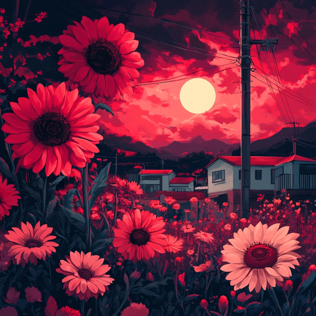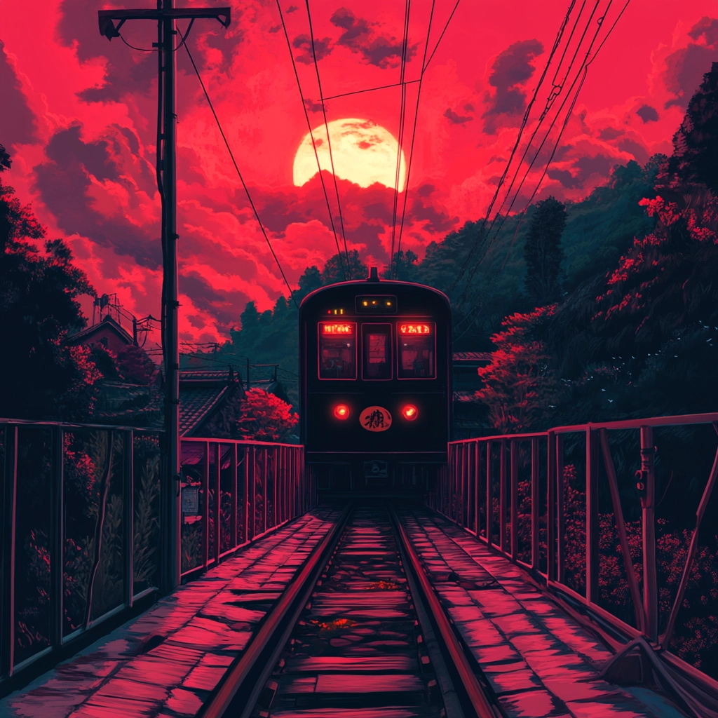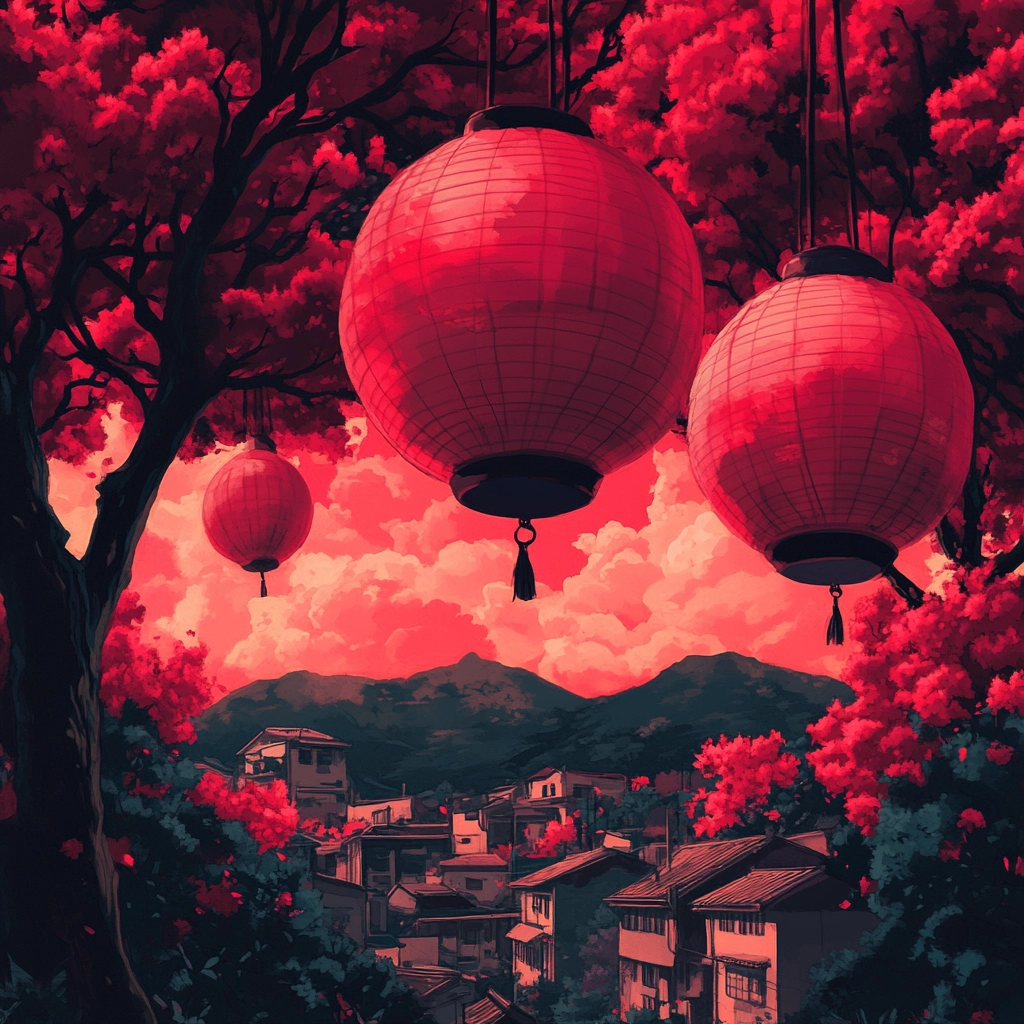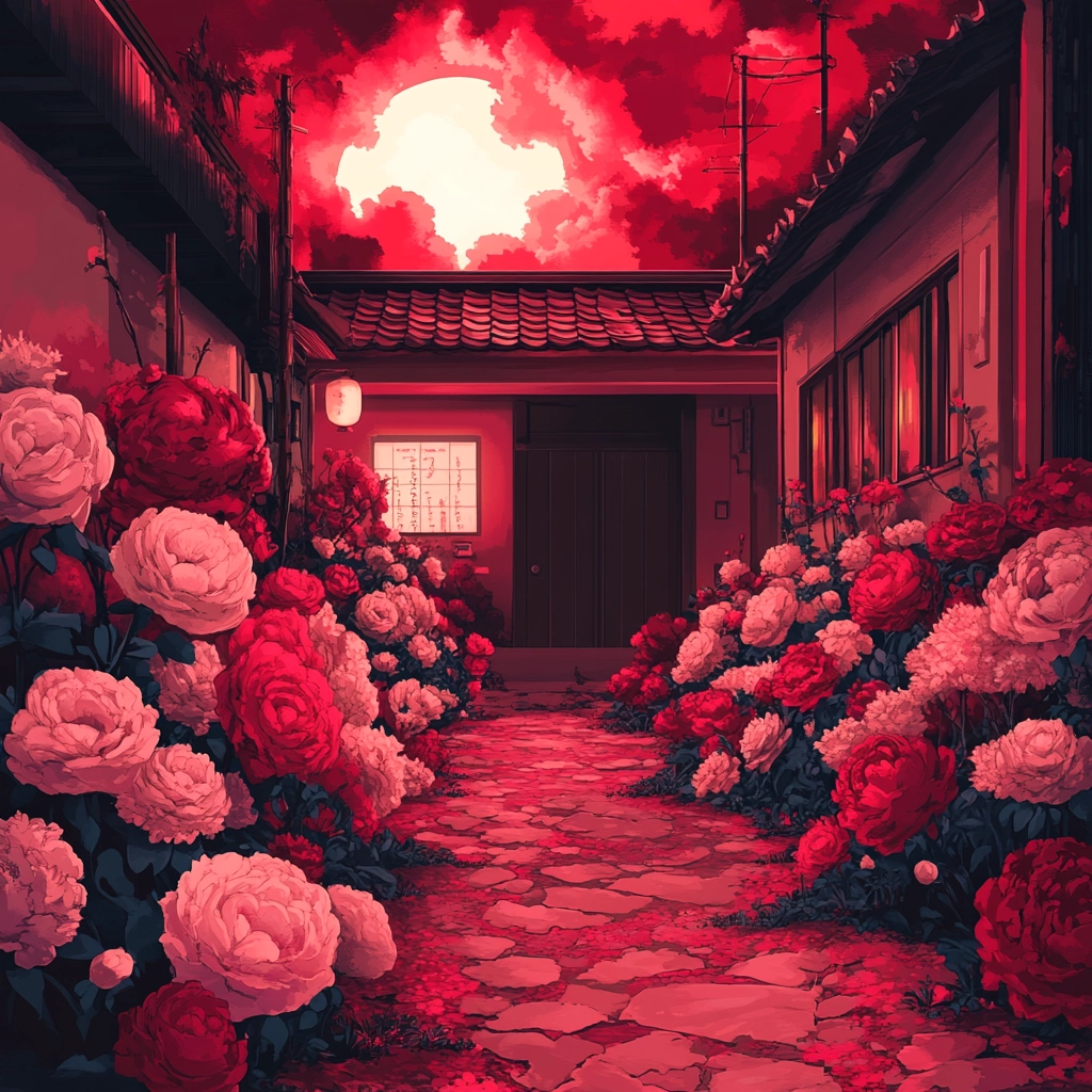 The use of illumination and red hues creates a vivid contrast with dark blues, emphasizing depth and accentuating details. The textures are finely detailed, offering a tactile perception that draws the viewer into a spatial complexity and warmth.