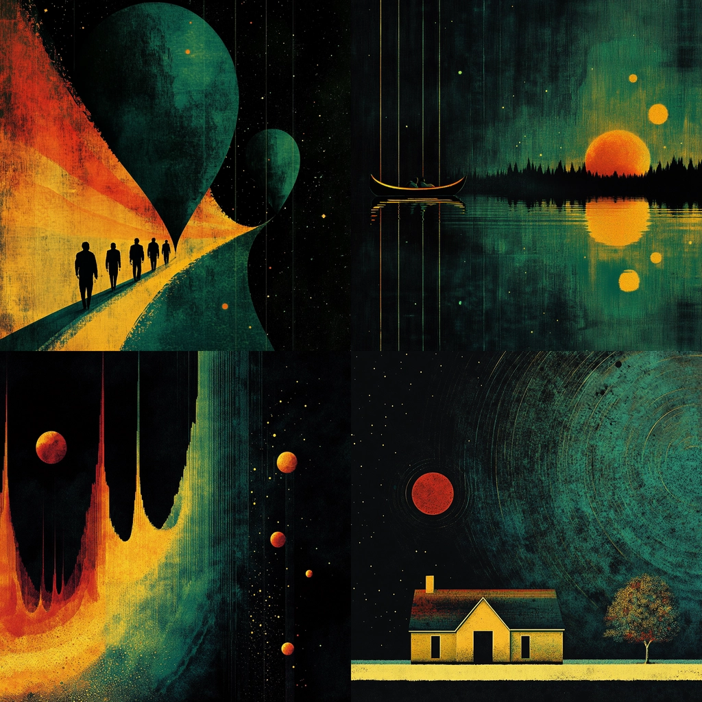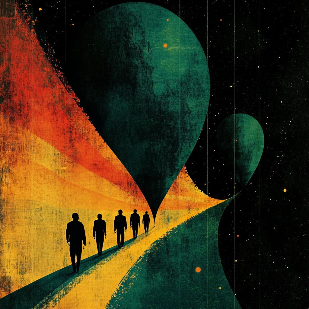 Dynamic lighting casts dramatic shadows and highlights vivid color contrasts, emphasizing depth and volume. The rich cyan reveals sharp details against the dark background, while wine red offers vivid focal points. Texture appears smooth yet reveals subtle gradients, enhancing spatial perception.