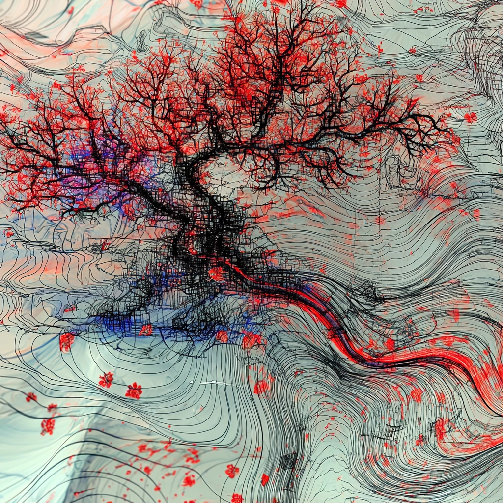 Dominated by swirling patterns highlighting bold contrasts.